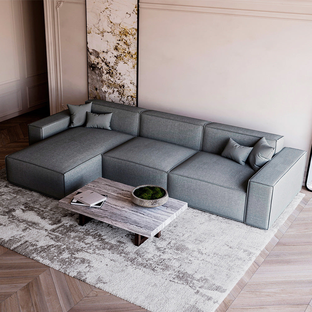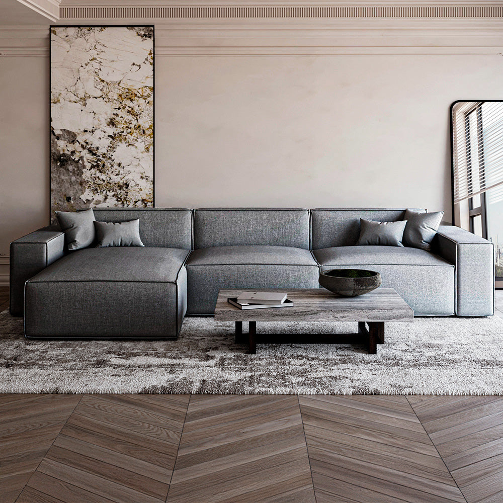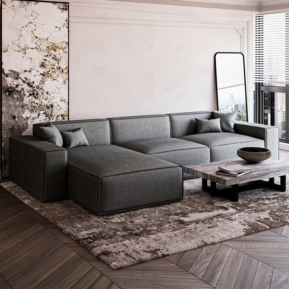 Alhome Elegant Grey Corner Sofa – Linen Fabric & Swedish Wood