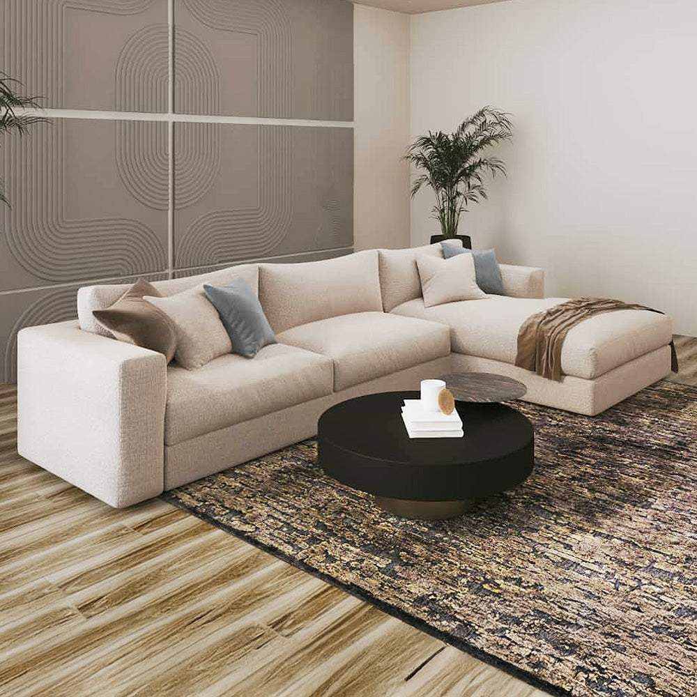 Modern L-Shape Corner Sofa – Premium Fabric & Wooden Frame – Beige by Alhome