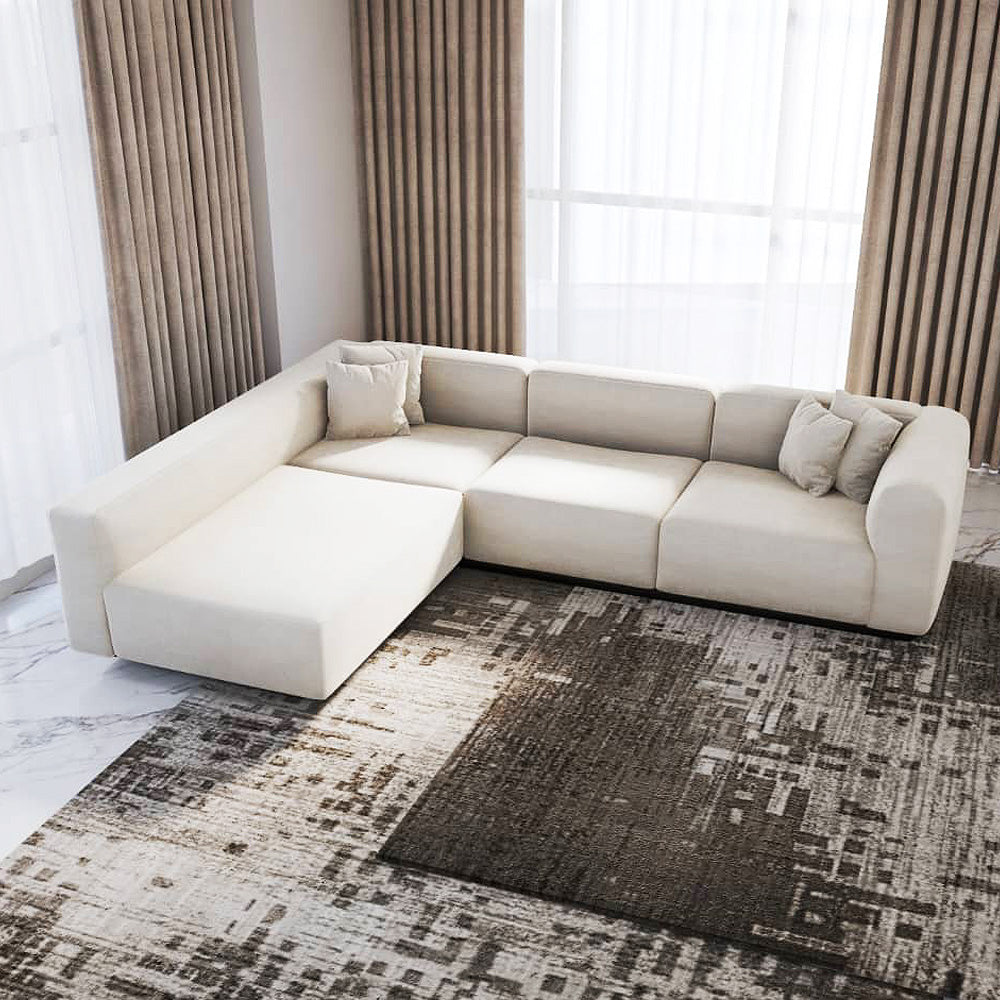 Elevate your interior with this luxurious L-shaped sofa that combines contemporary design with ultimate comfort. Upholstered in premium off-white linen fabric, it brings a soft and serene vibe to any space. The structure is crafted from natural Swedish wood, renowned for its durability and lightweight properties, making it a long-lasting investment for your home.