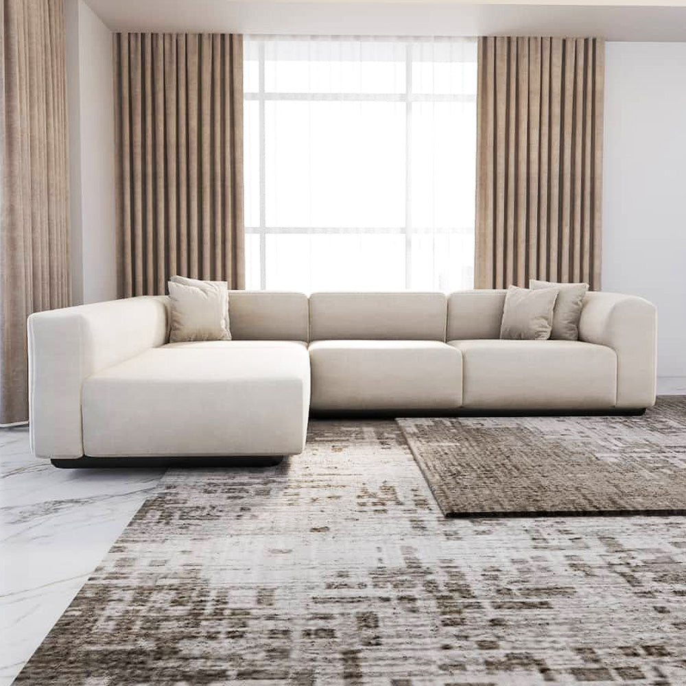L-Shape Linen and Swedish Wood Sofa – Off White