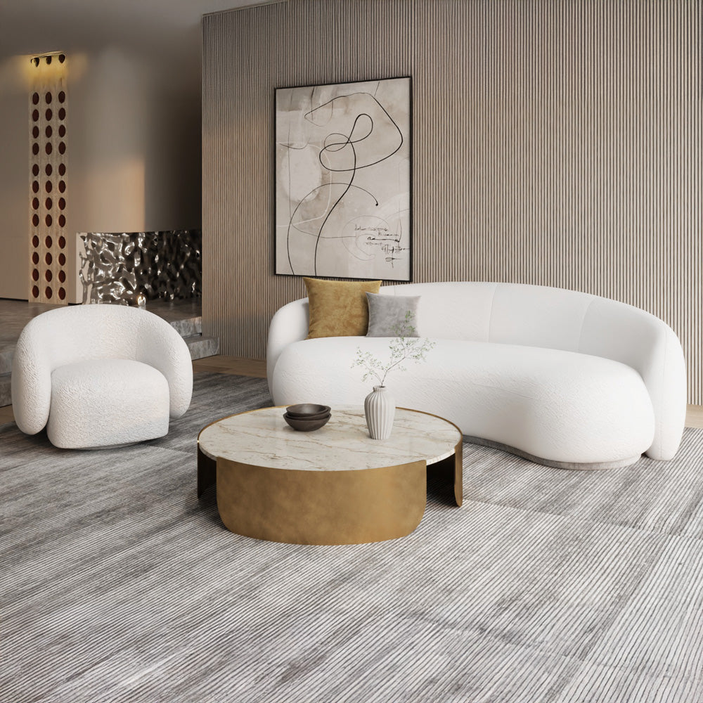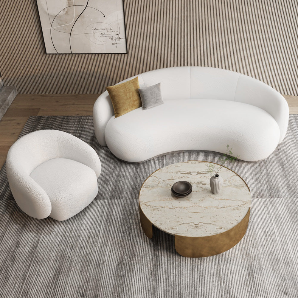 Elevate the elegance of your living space with this premium sofa and chair set from Alhome, designed to combine luxurious comfort with modern sophistication. Upholstered in pristine white bouclé fabric, this set adds a refined, contemporary touch to any home décor.