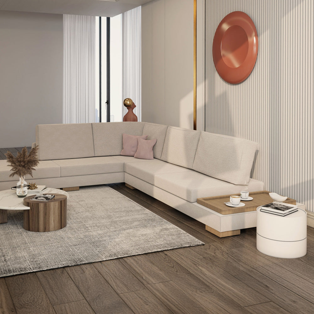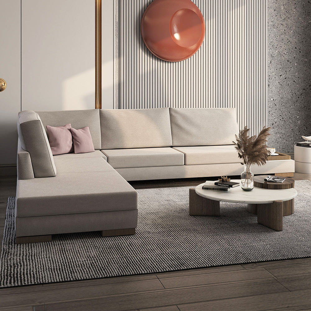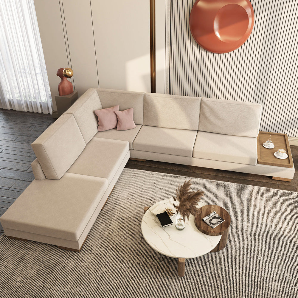 Swedish Wood & Linen L-Shape Sofa by Alhome - Beige