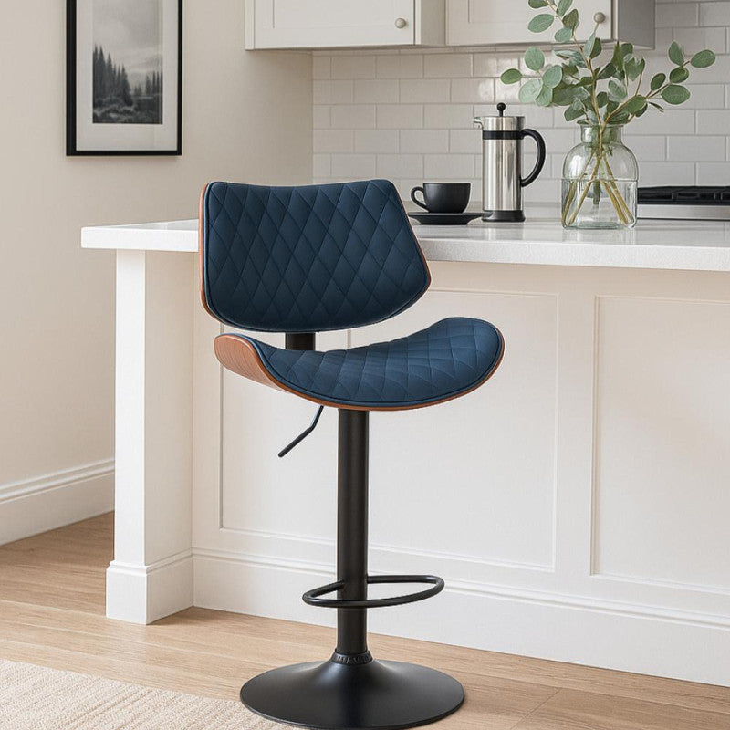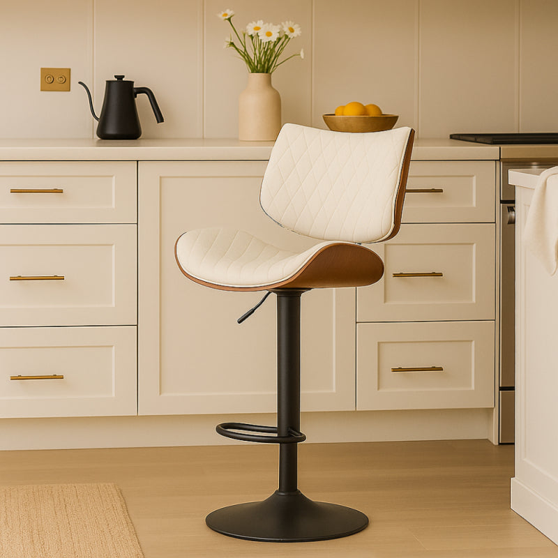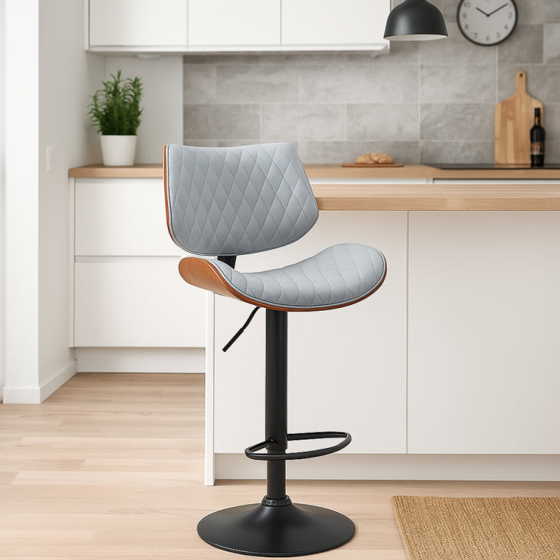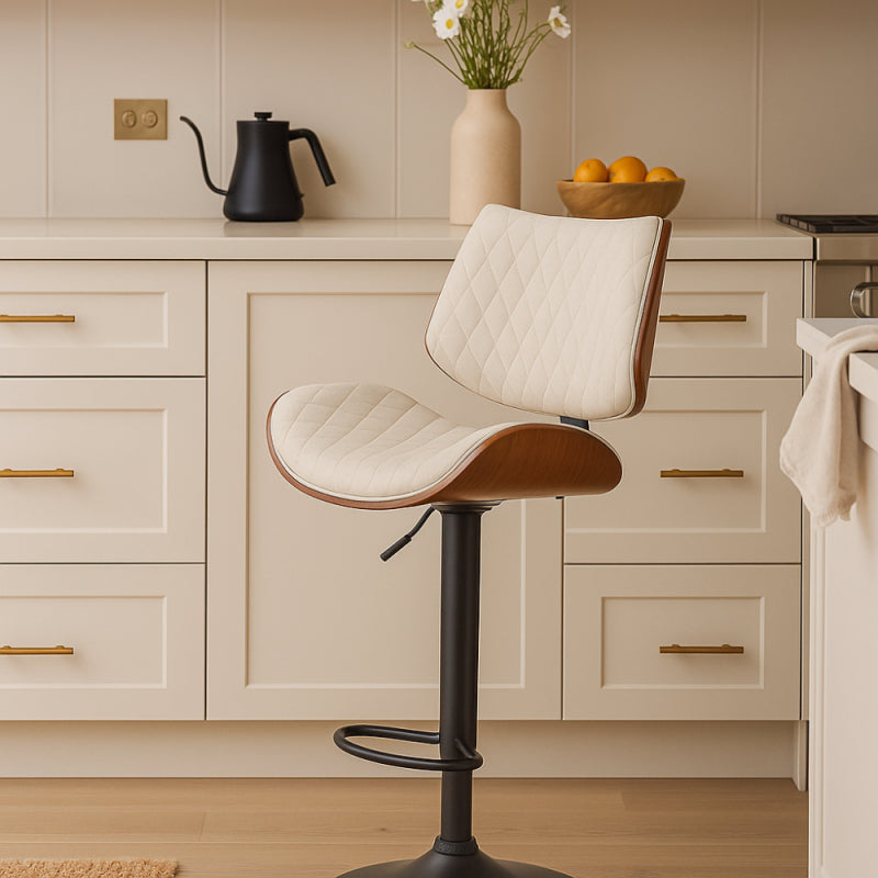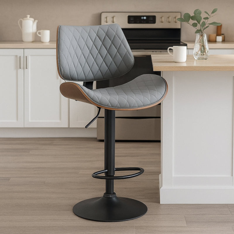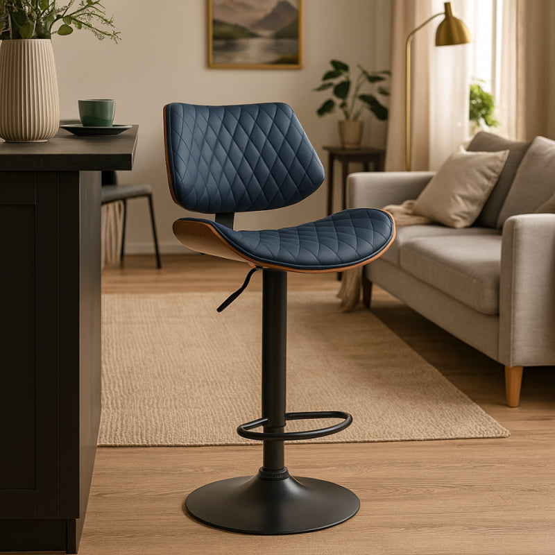 The Bar chair is a stylish piece that combines comfort with a modern look thanks to its premium padding and stitching details on the back and seat. Its curved design provides excellent support while seated, while the wood-toned side accents enhance its elegance, making it suitable for kitchen tables, bars, and contemporary seating areas. Its harmonious appearance adds a touch of sophistication to any interior.
