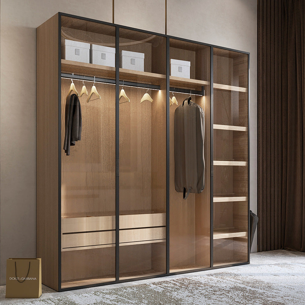 Alhome Wooden Wardrobe with Glass Doors – A Perfect Balance of Elegance and Functionality