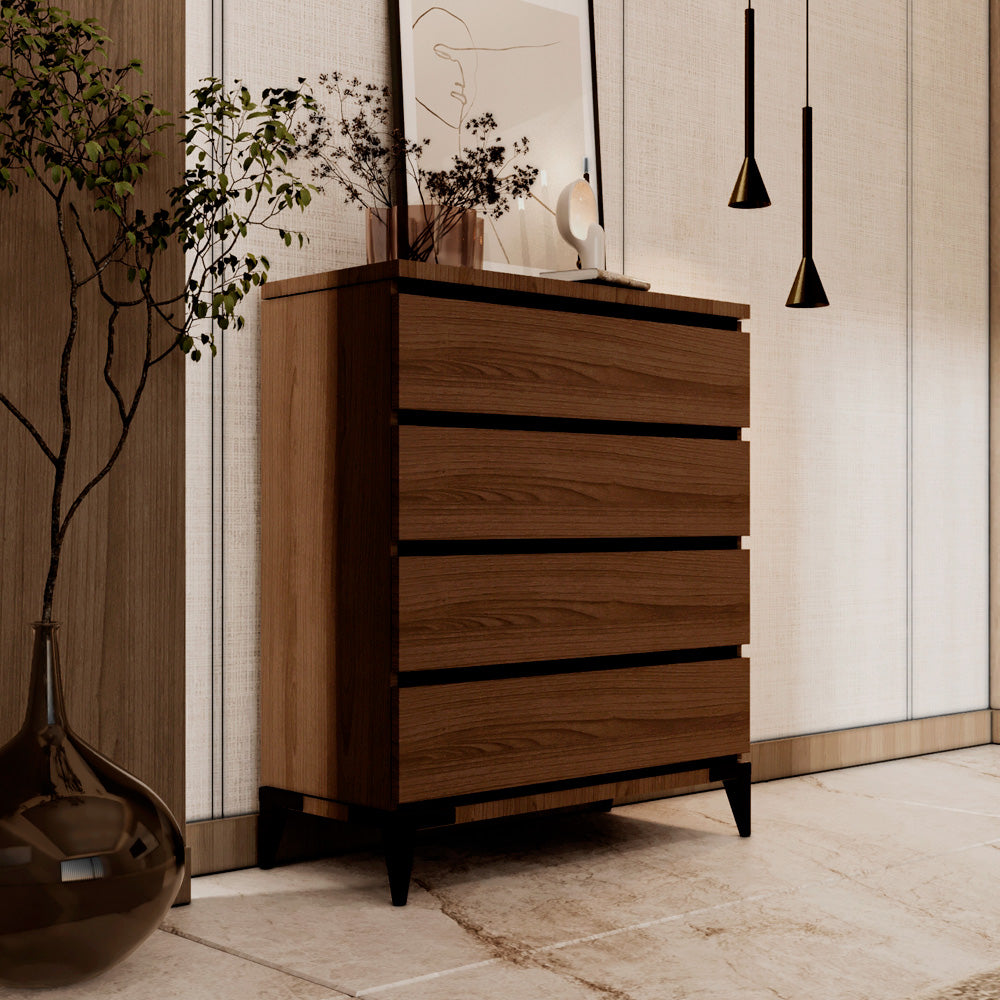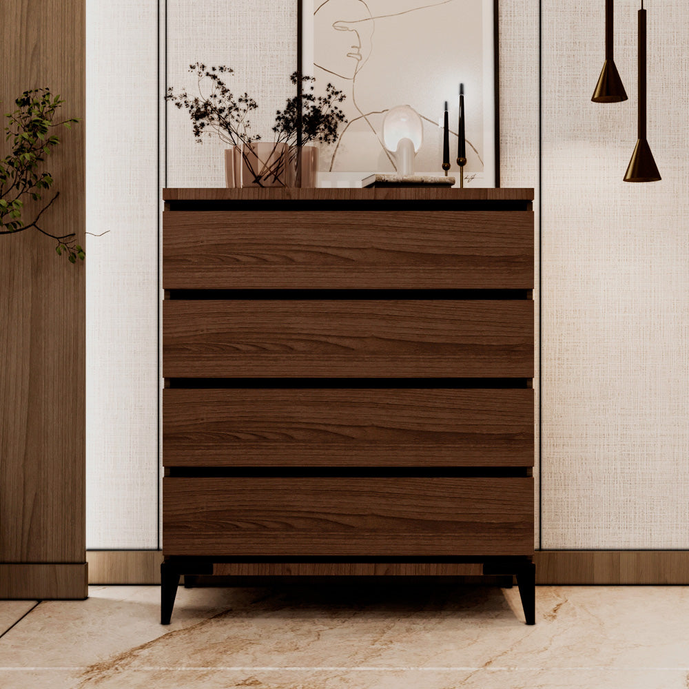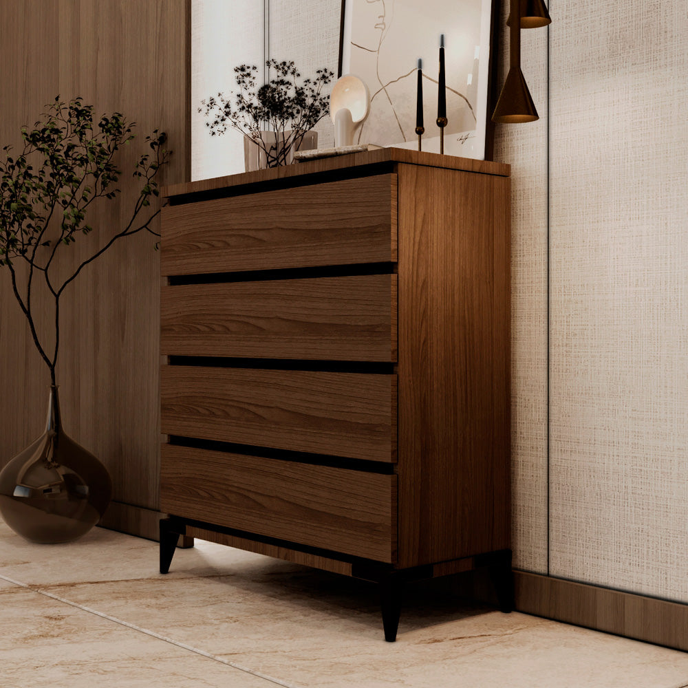 Crafted from high-quality MDF, the structure ensures strength and stability for everyday use. The rich brown finish adds warmth to any room, blending seamlessly with various décor styles. Its combination of drawers and open shelves provides flexible storage for a range of items — from books, décor pieces, and electronics to linens, kitchenware, and personal essentials.