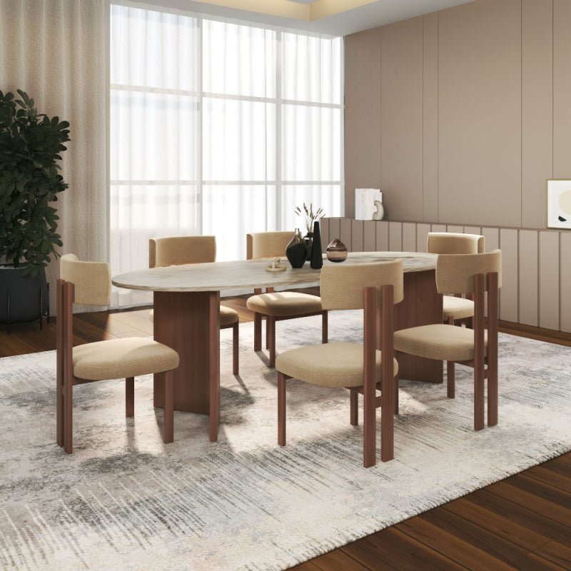 Elegant Dining Table Marble and Wood by Alhome - 160x74x70 cm