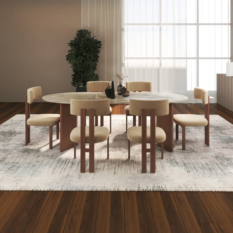 Bring a sense of luxury to your dining space with this marble and wood dining table by Alhome. The refined materials create an elegant and inviting atmosphere.