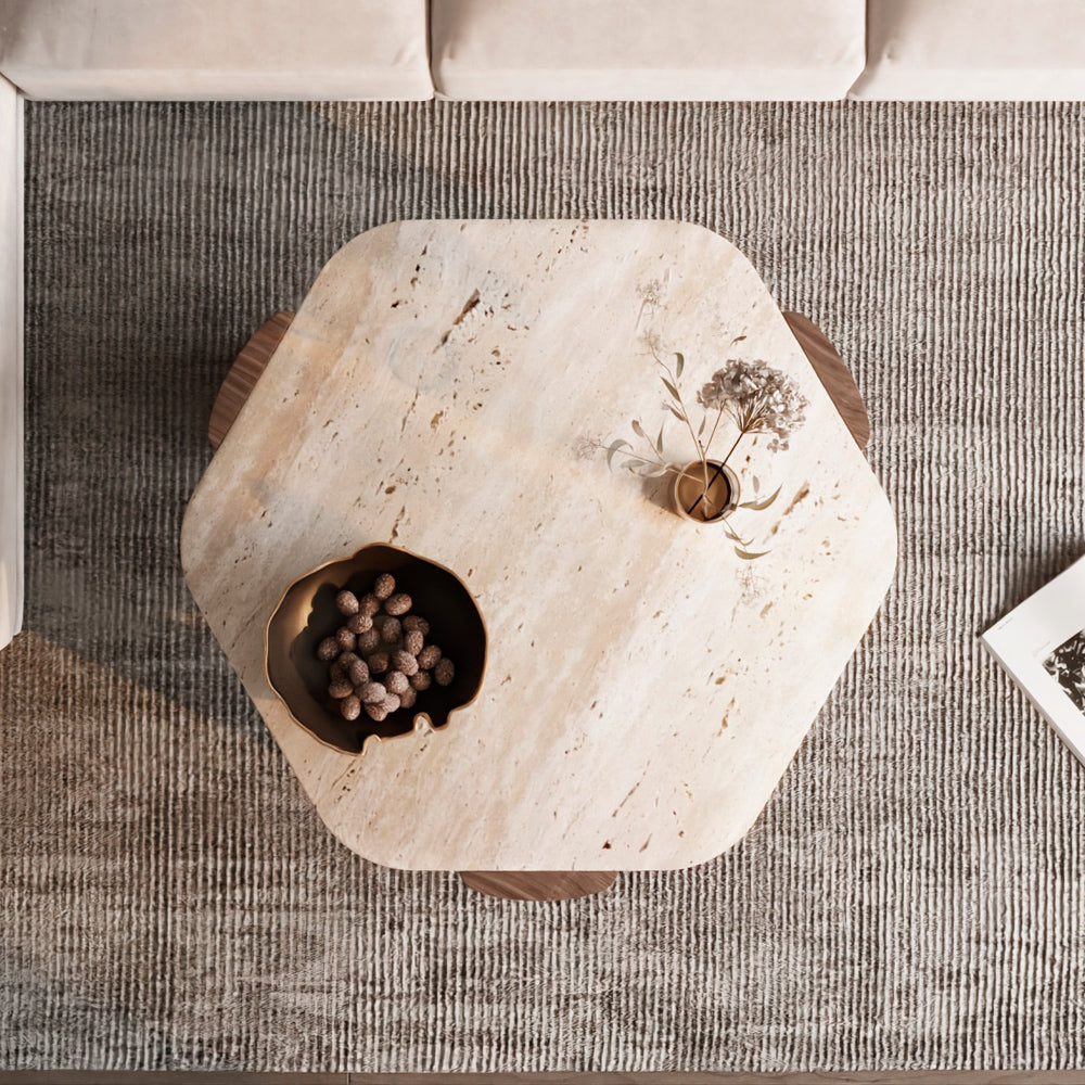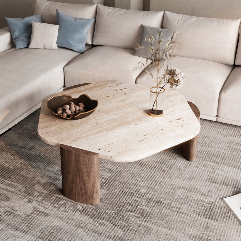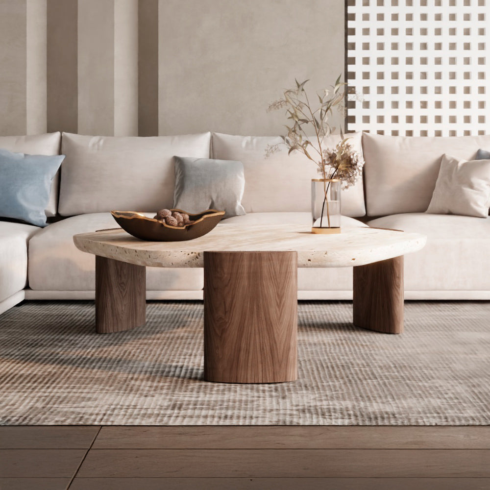 Harmony Treventino and Wood Center Table - 95x85x34 cm - Off-White By Alhome - 110110167