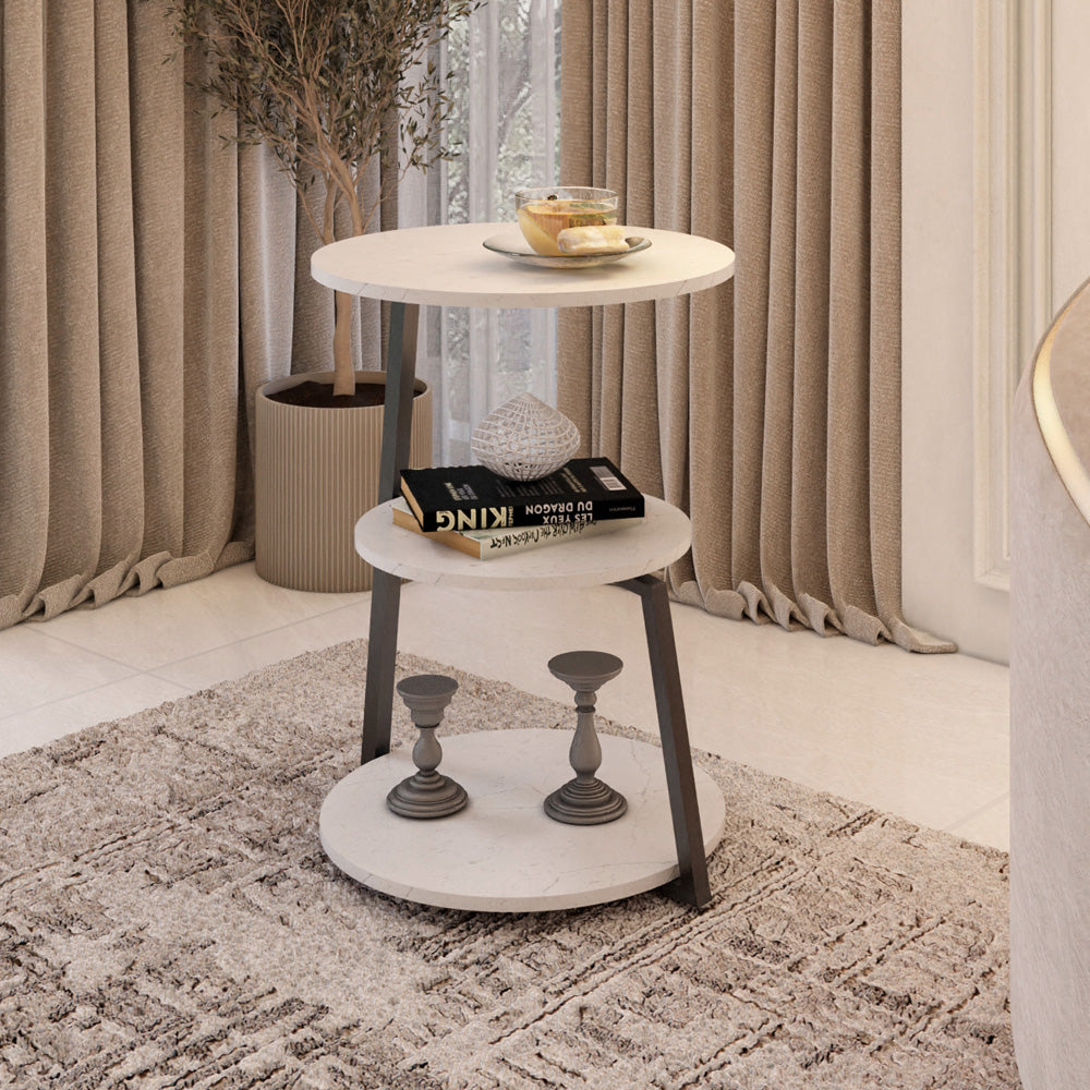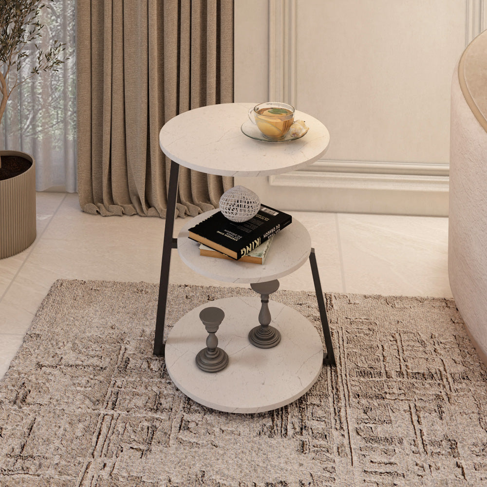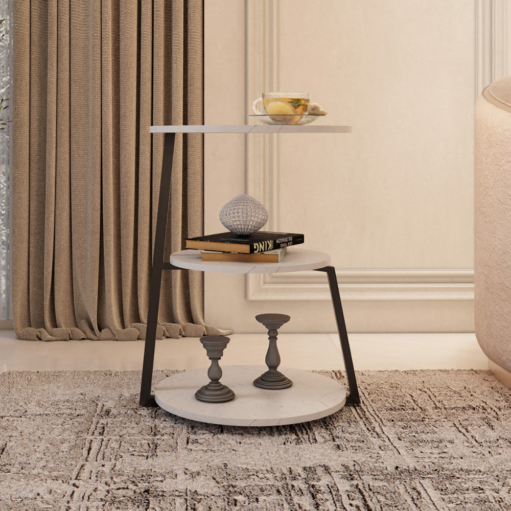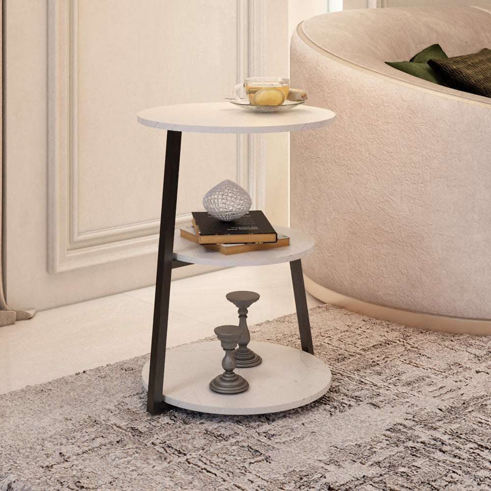 Alhome Iron and Marble Wood Side Table - 40x60 cm - Black and White