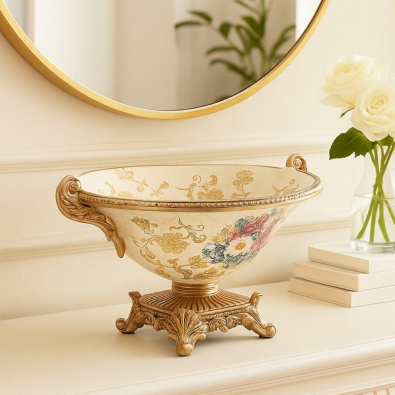 A luxurious decorative bowl with a classic, ornate design that combines elegance and sophistication with sophisticated gold accents.