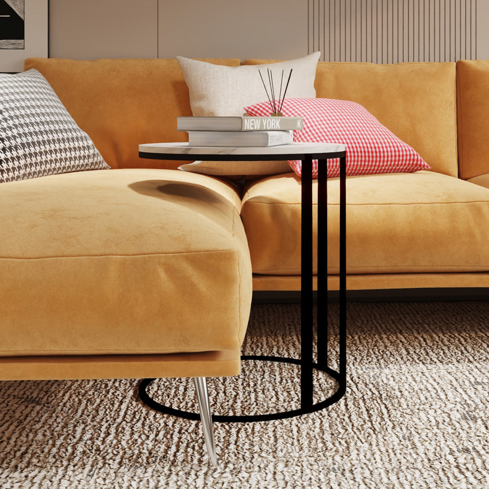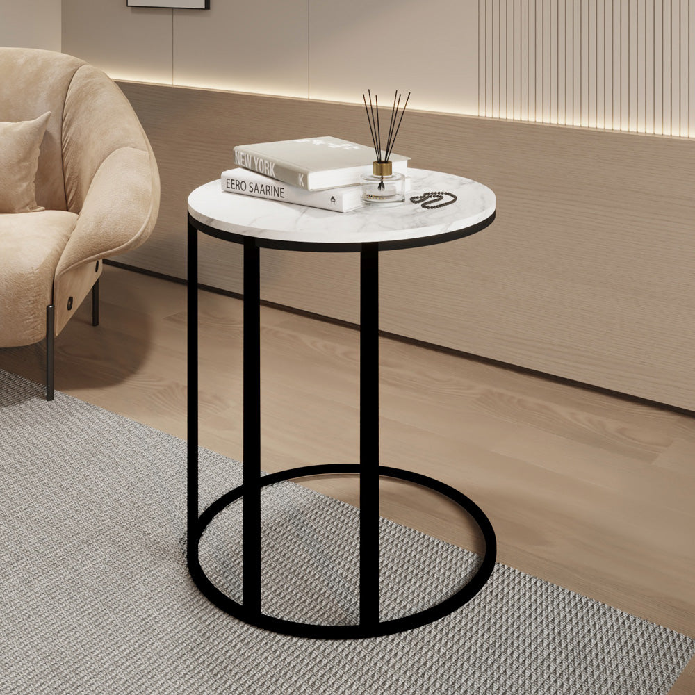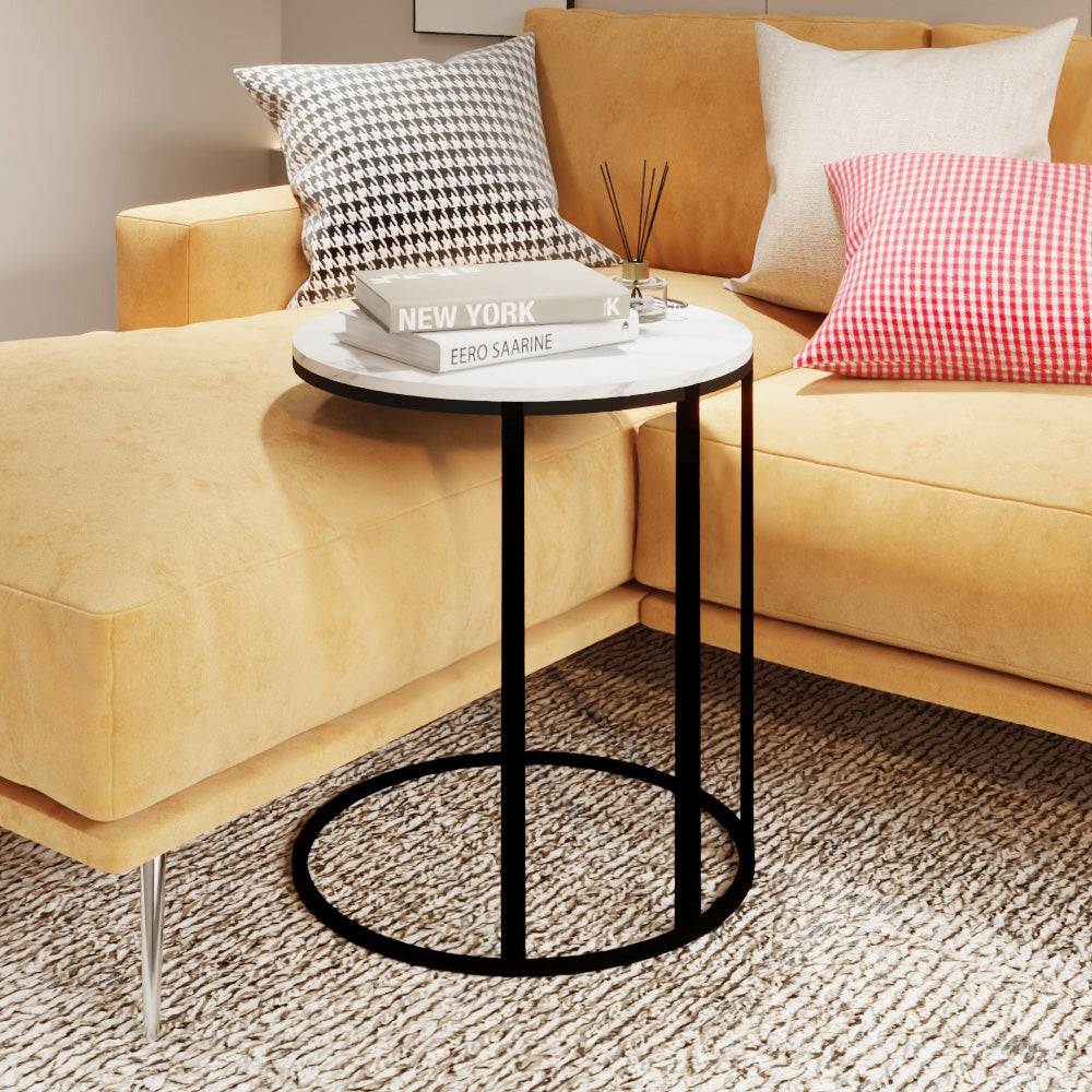 Modern Side Table – Marble Wood & Iron – Black – By Alhome