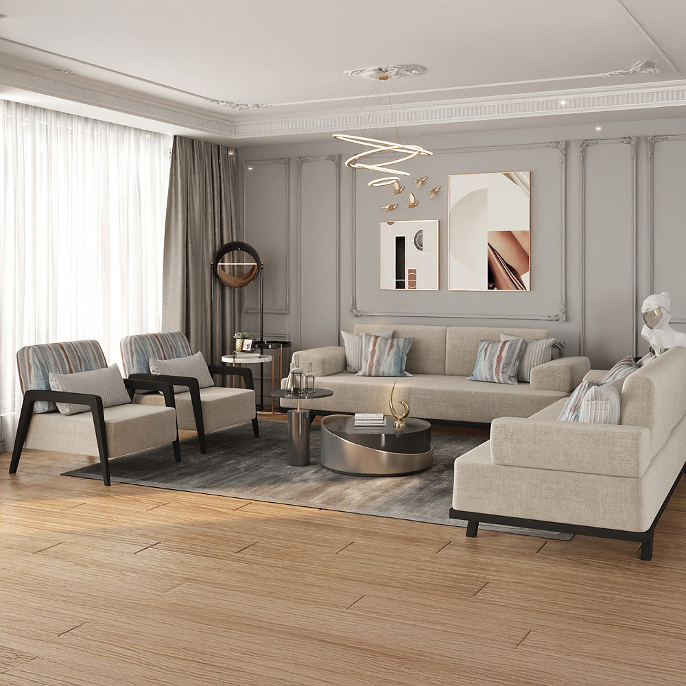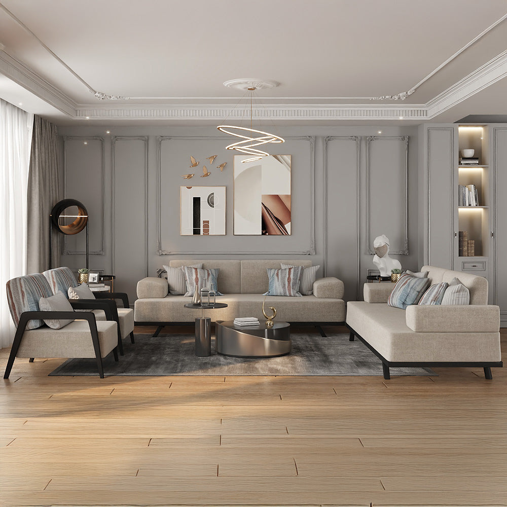 This sofa set is designed to offer you a comfortable seating experience with a touch of luxury that suits all tastes. It combines high-quality materials and precise craftsmanship to provide you with a long-lasting piece that adds charm to your living space.