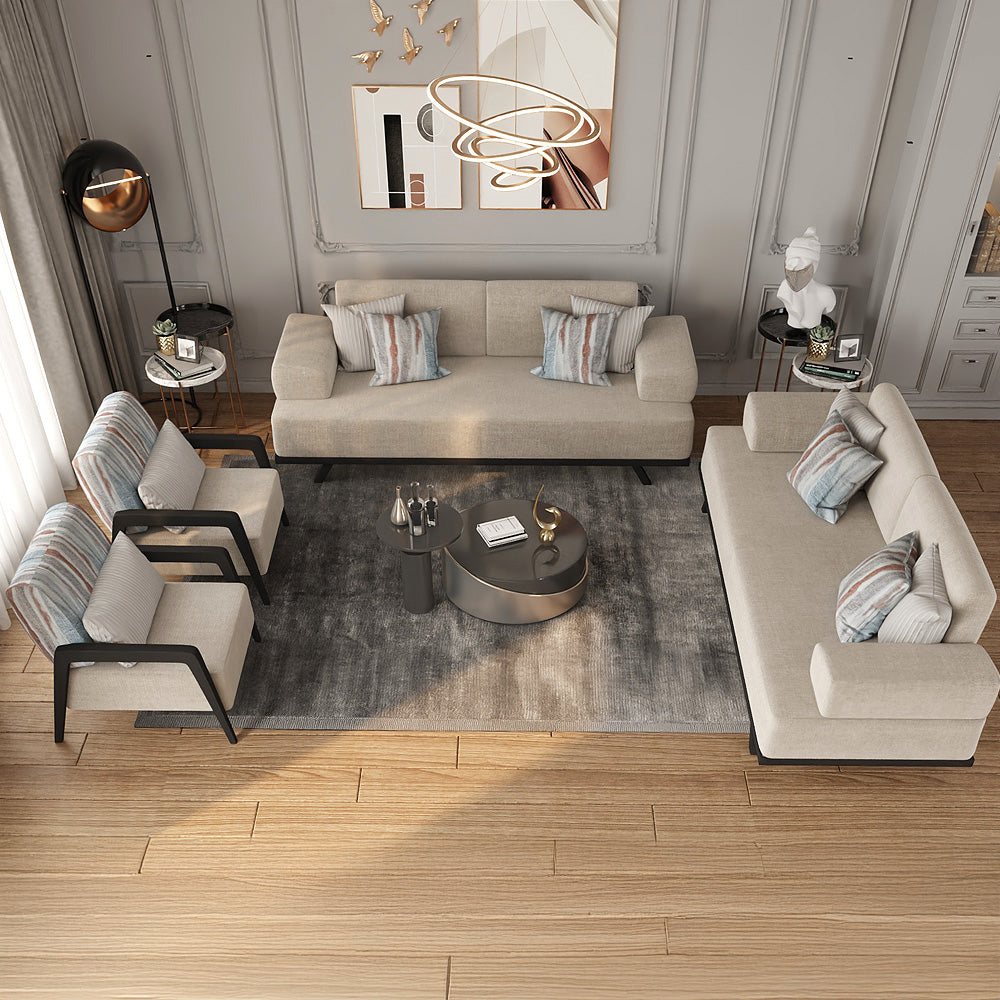 Consists of two three-seater sofas and two single chairs, providing 8 comfortable seating spaces for family or guests.