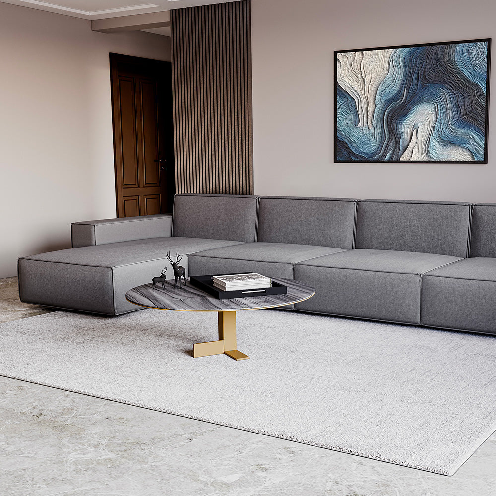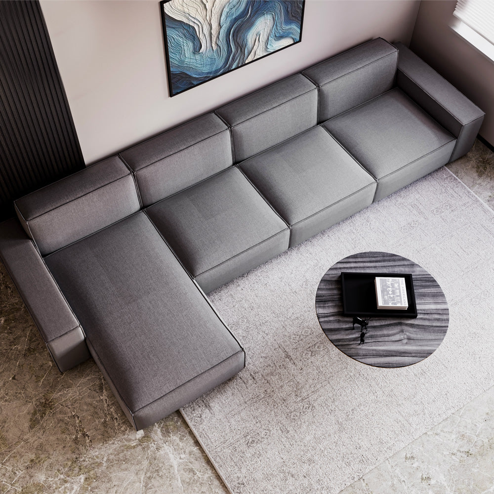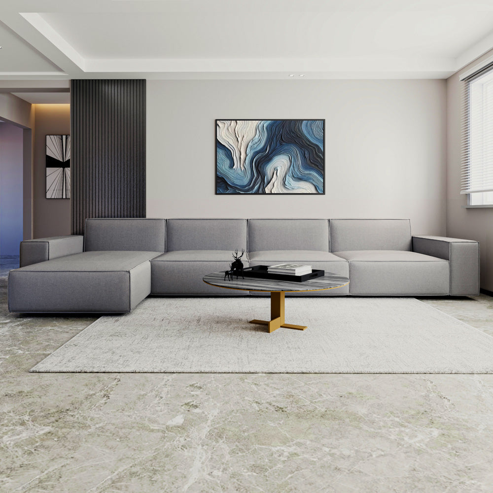 An expansive and luxurious gray L-shaped sofa from Alhome, showcasing plush velvet upholstery and a sturdy frame crafted from Swedish wood. This sofa, with its generous dimensions, is ideally suited for spacious living areas, offering both comfort and a statement in contemporary design.