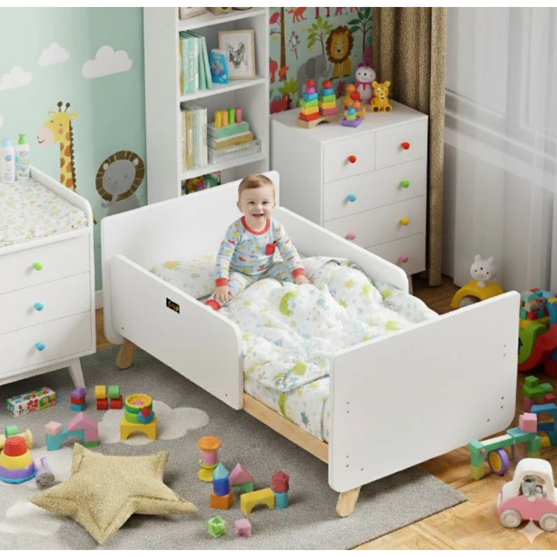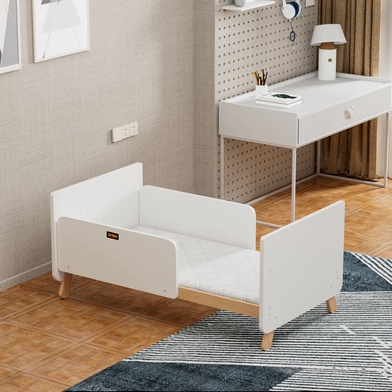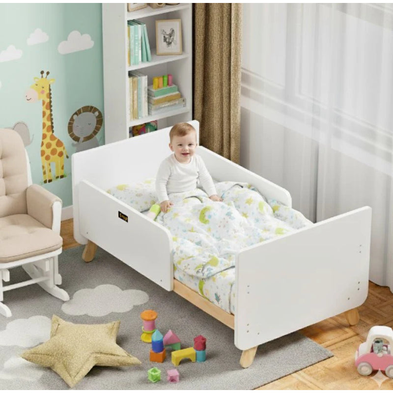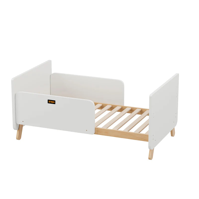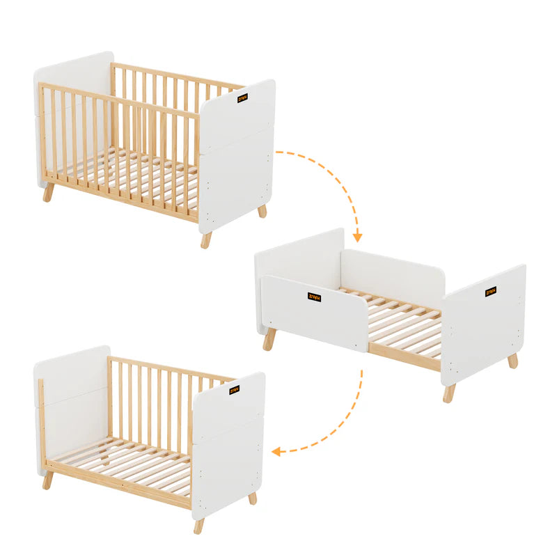 Can later be converted into a toddler bed with two guarded sides using parts from the cot end panels. No separate purchase of conversion kit required