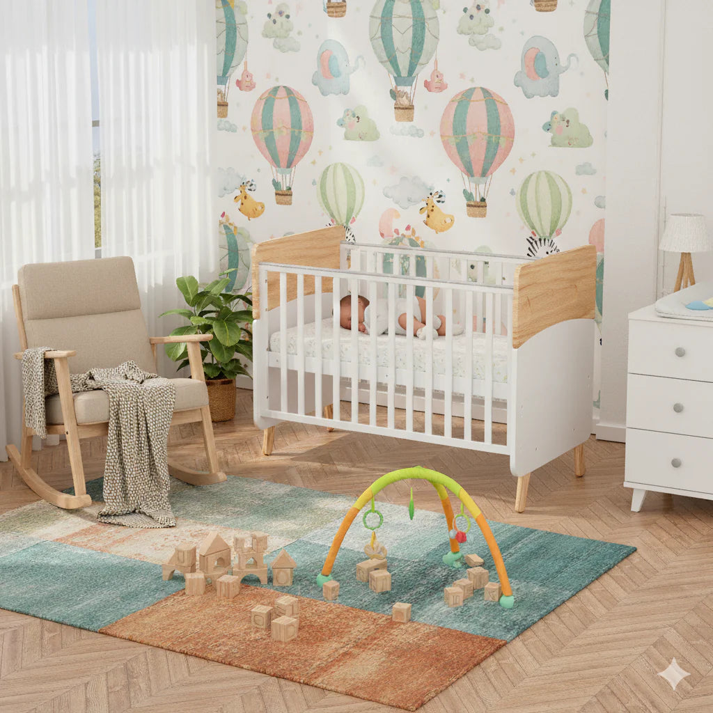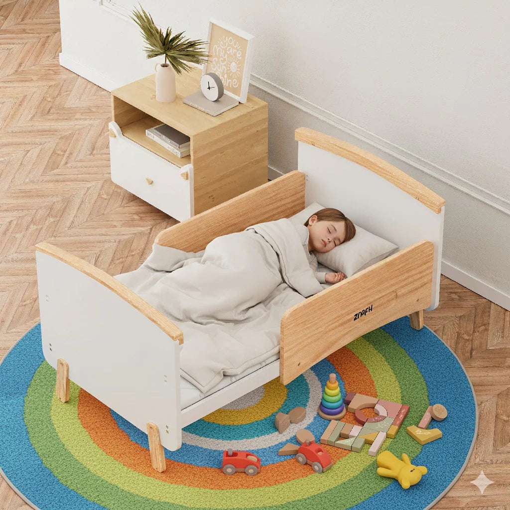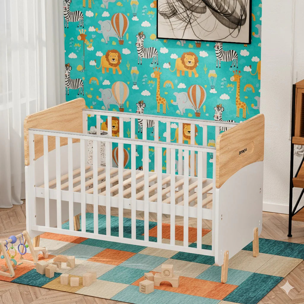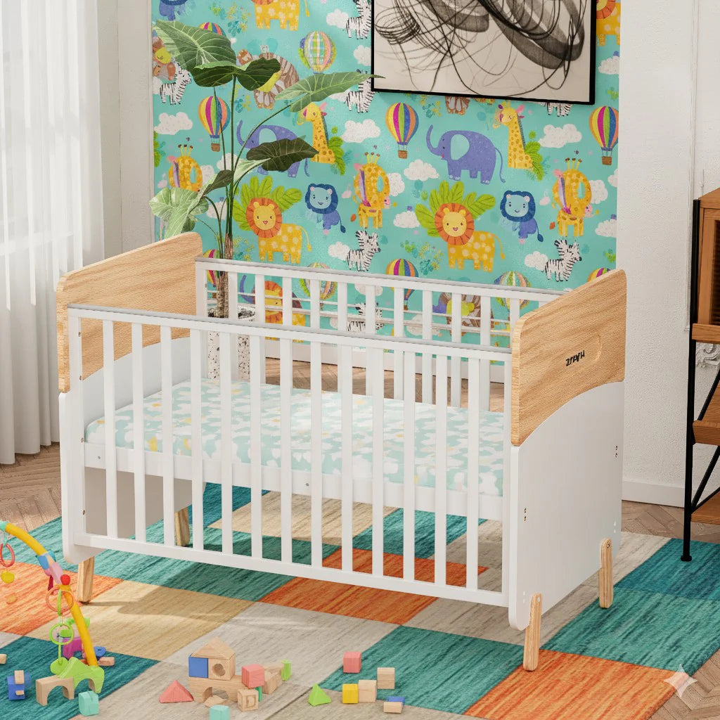 With a minimalist aesthetic and a modern two-tone colorway, the Convertible Baby Crib to Toddler Bed offers a unique and stylish addition to contemporary nursery designs. Crafted from a combination of sustainable pine wood and engineered timber, this modern baby cot provides fantastic value and is designed to support your little one beyond the nursery.