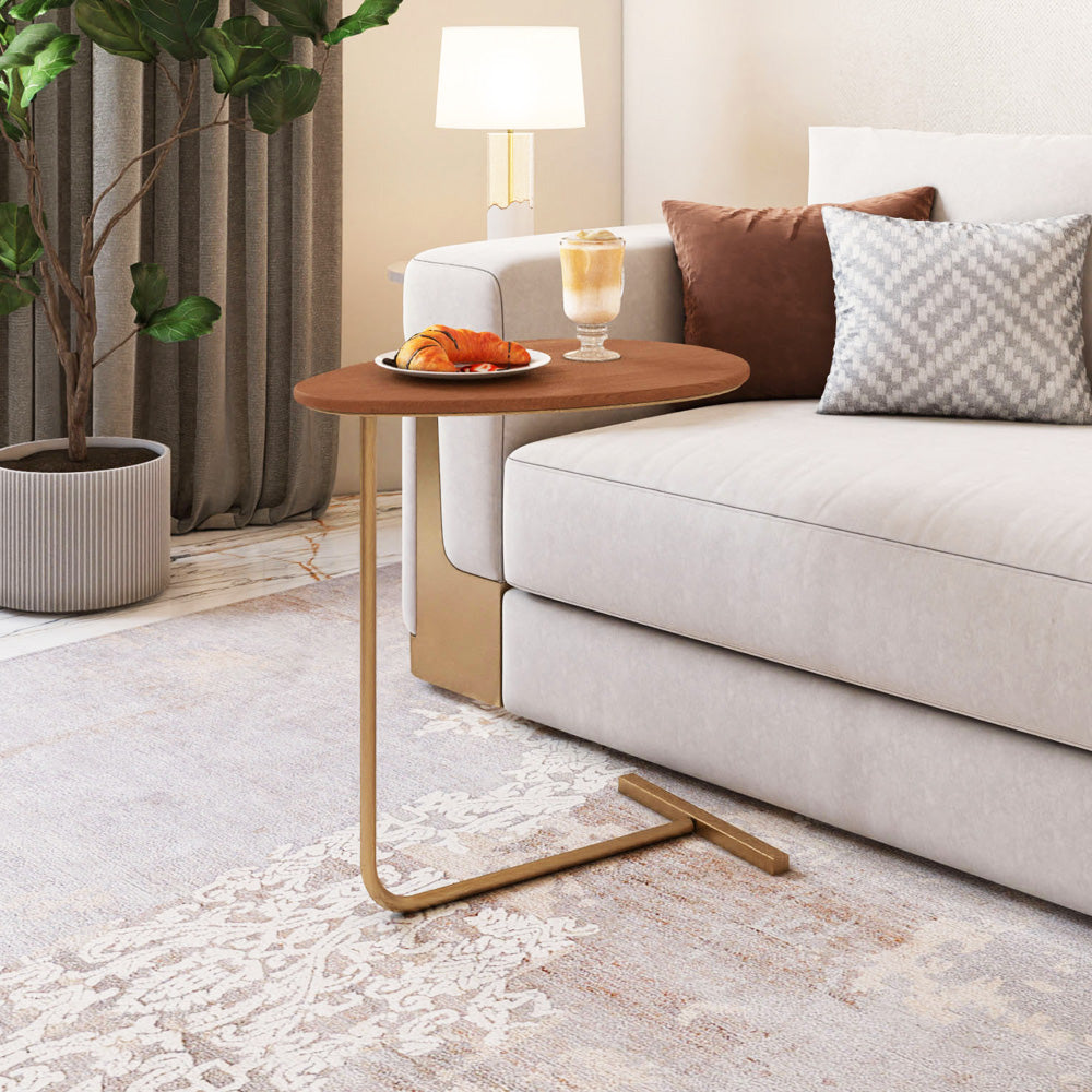طاولة وسط من الهوم من الخشب المُصنع والحديد - بني وذهبي