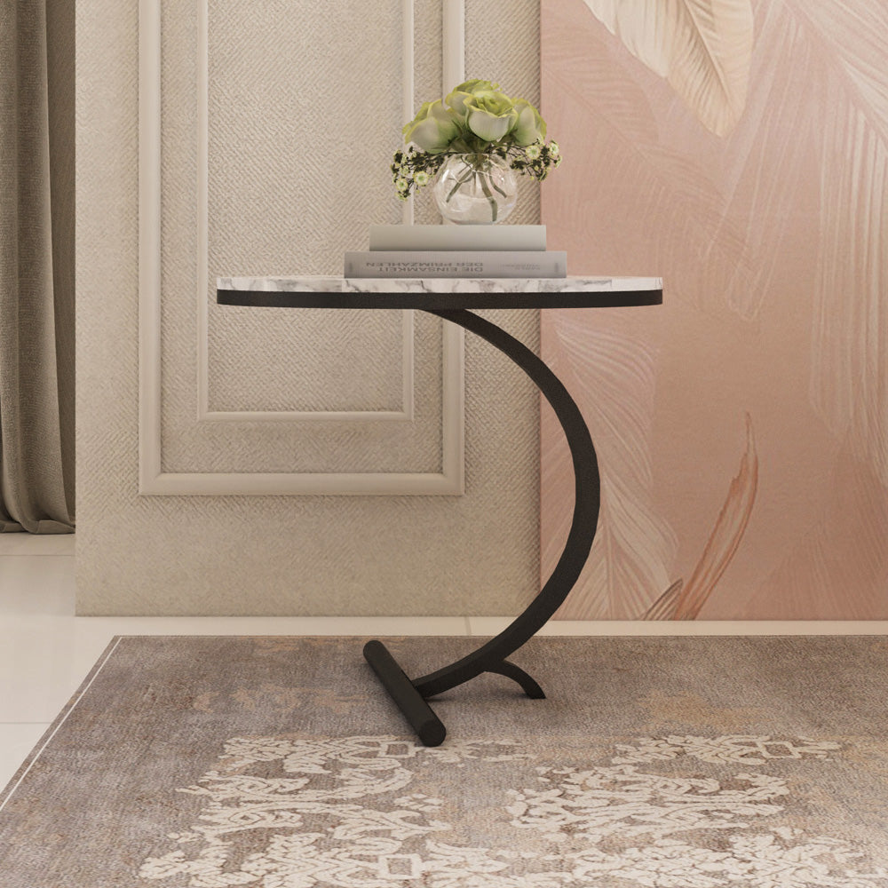 طاولة جانبية الهوم من الخشب الرخامي والحديد- 35×55x55 سم - أبيض