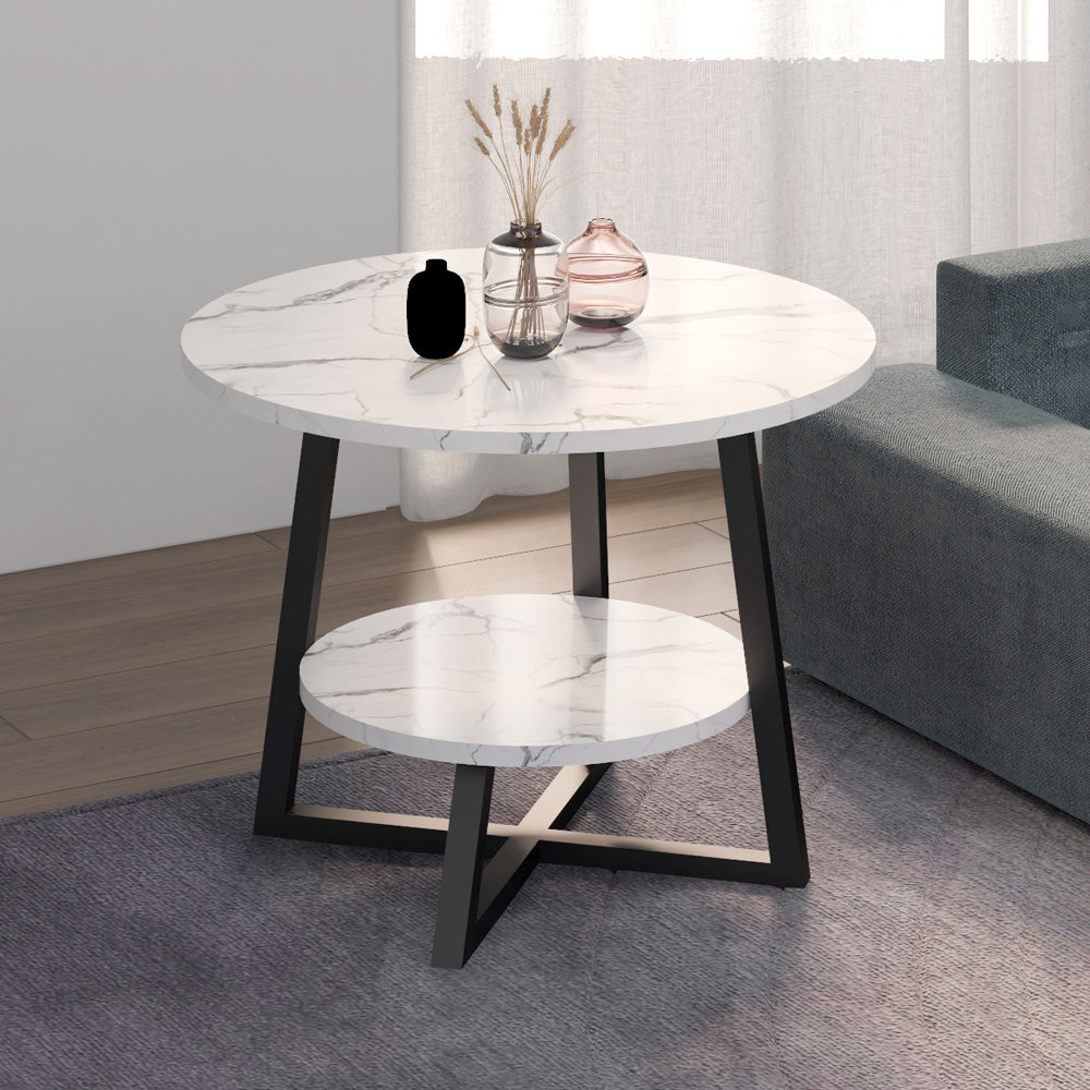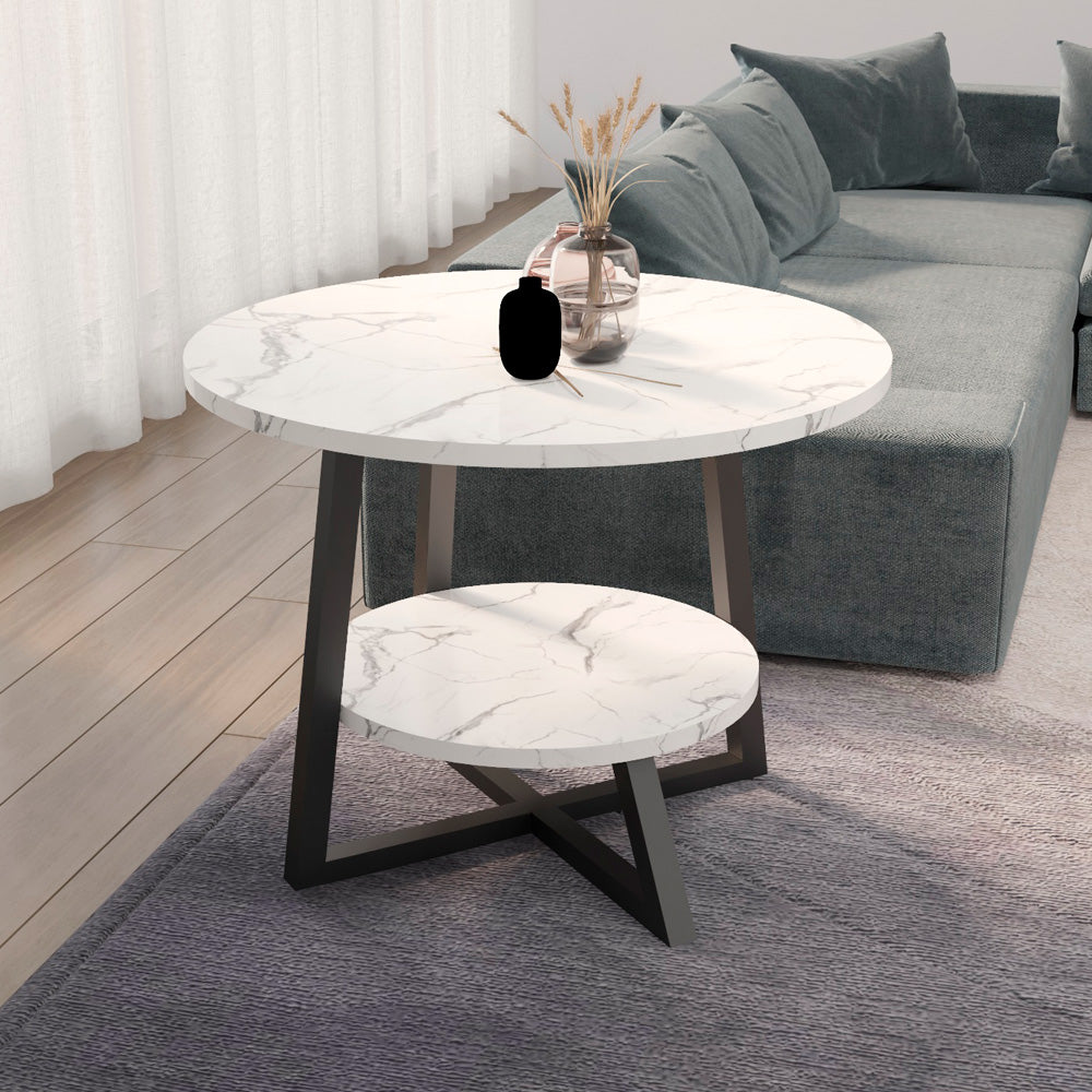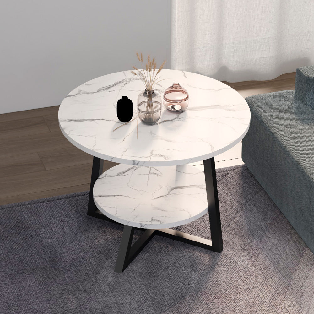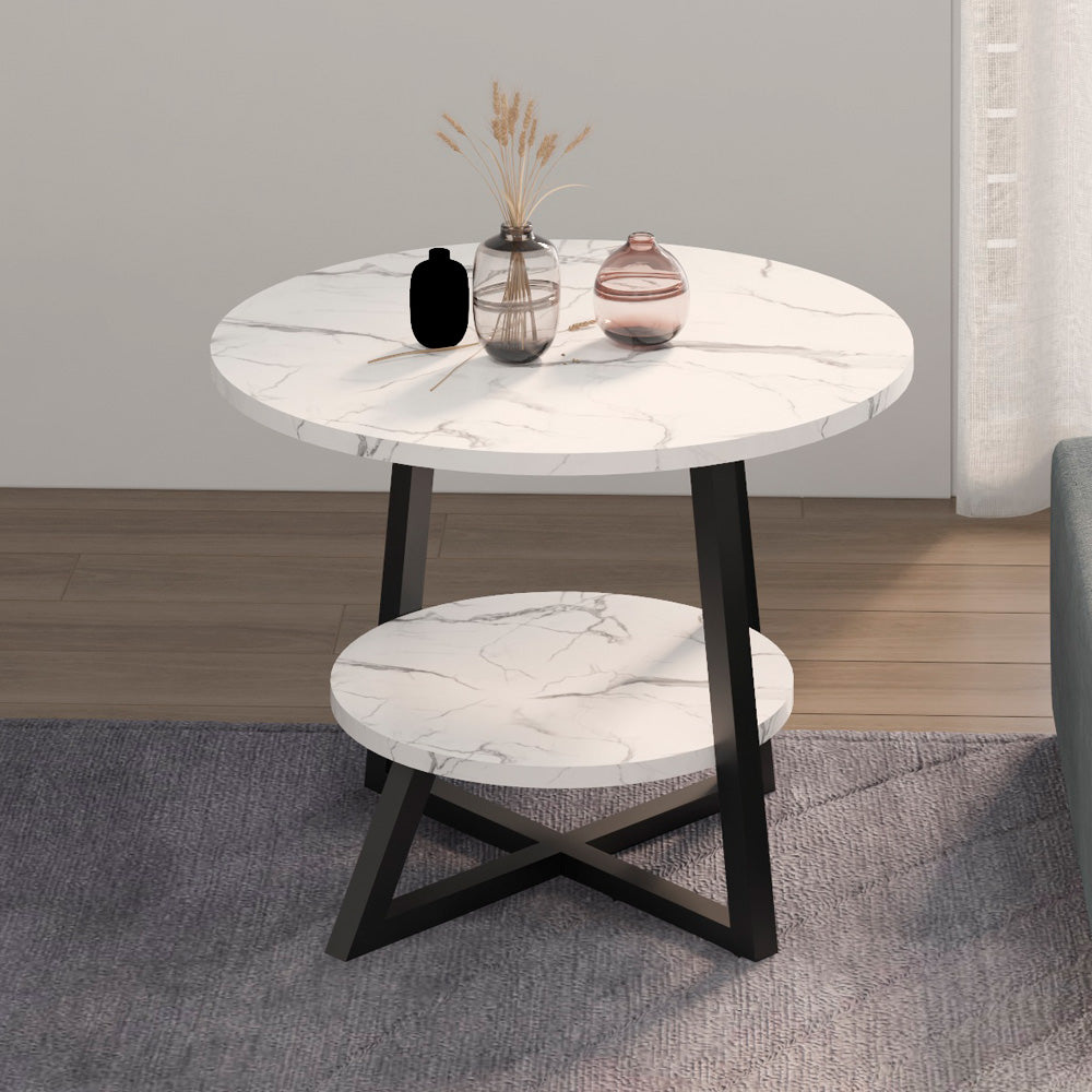 طاولة جانبية مودرن – تشطيب خشب مظهر الرخام الأبيض مع قاعدة حديد – من الهوم