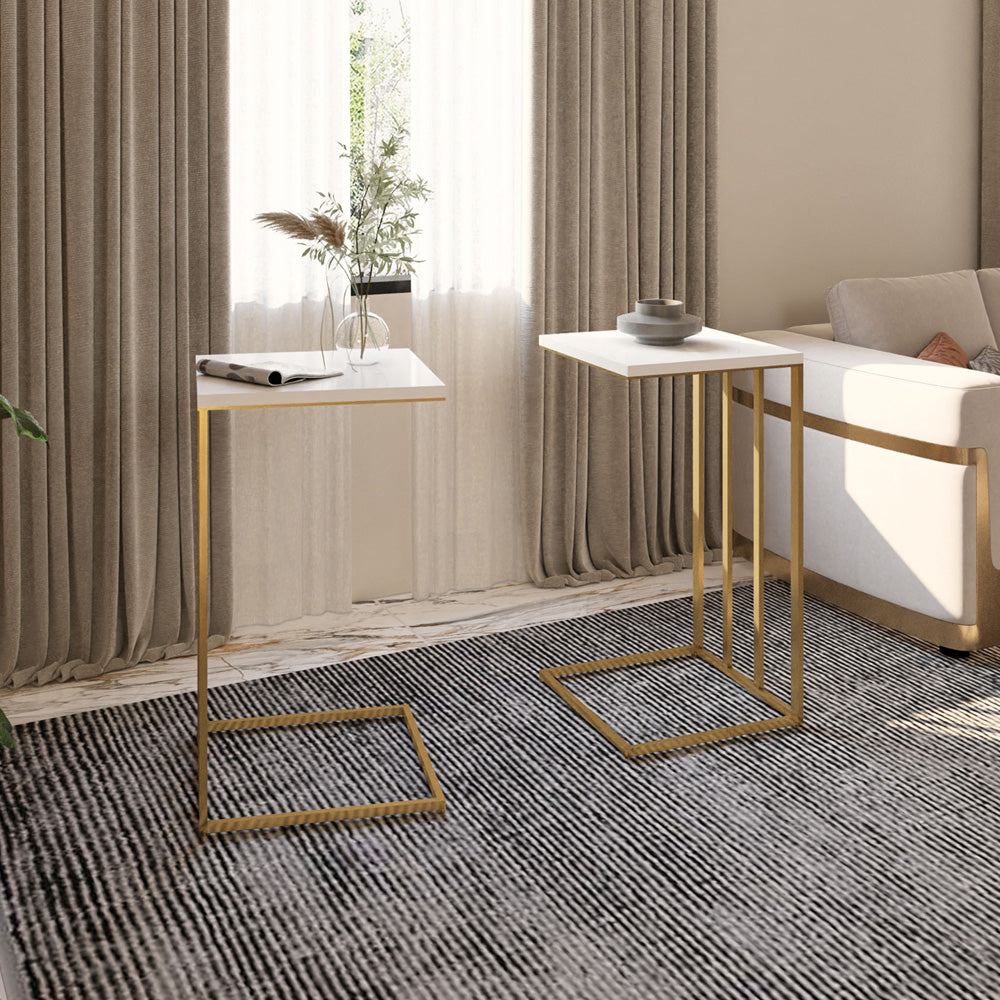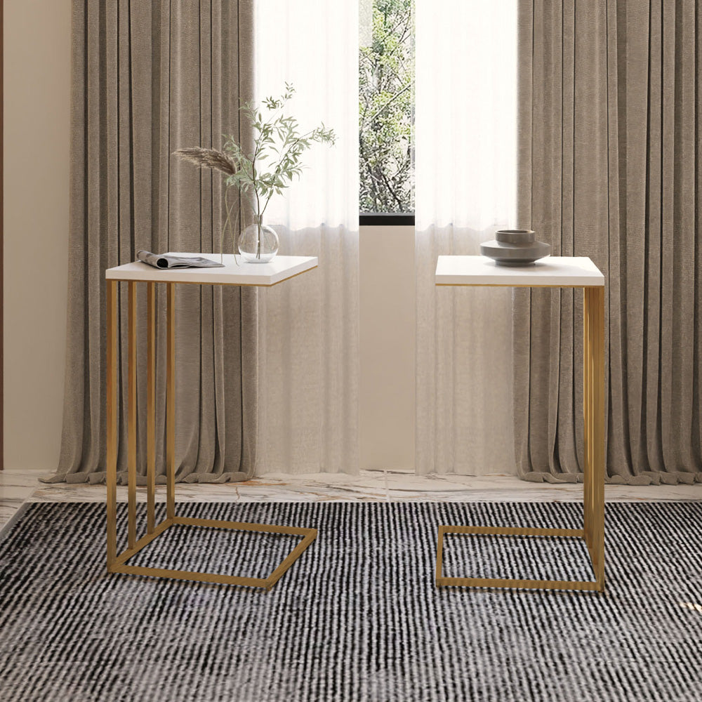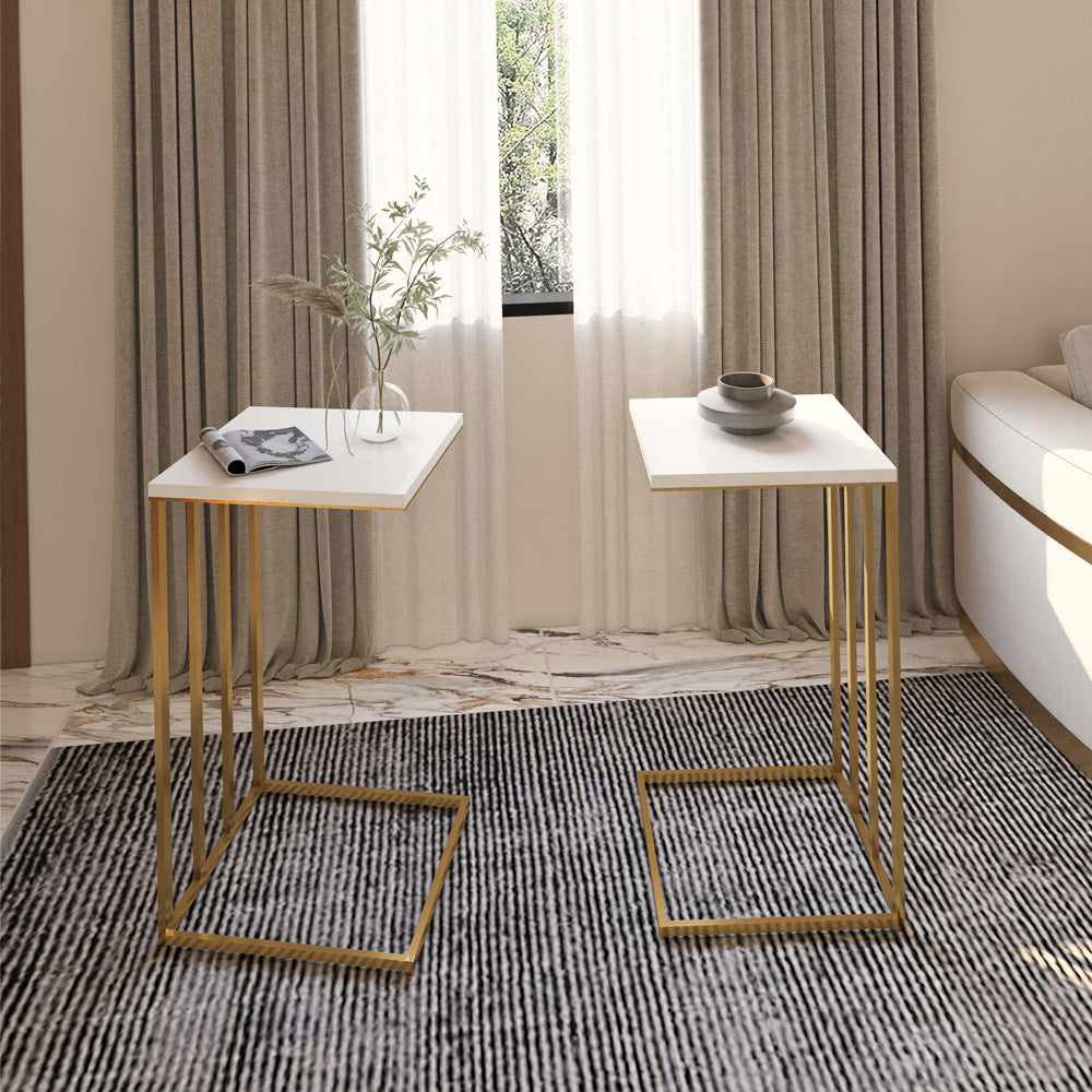 طقم طاولات فاخرة من قطعتين باللونين الذهبي والأبيض – من الهوم