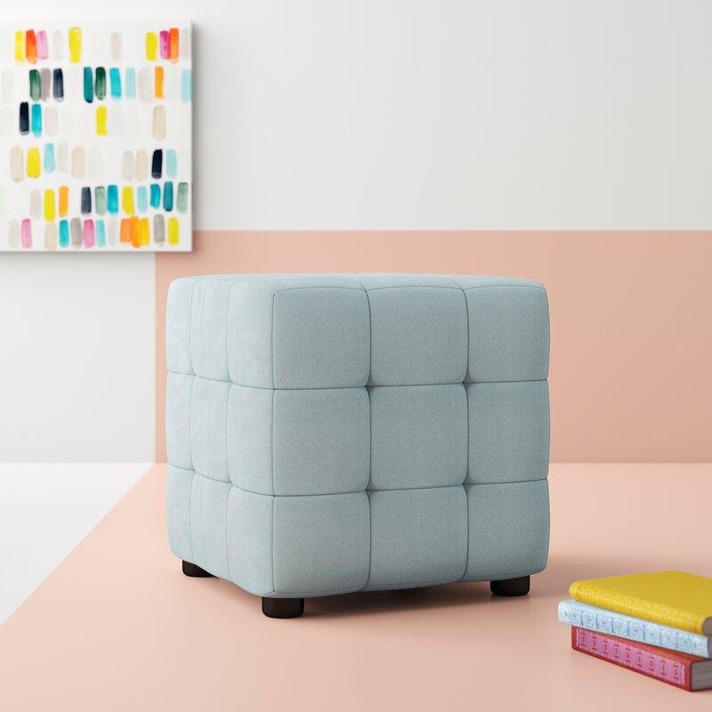 Alhome Velvet Navy Pouf خشب ماليزي، قماش مخملي، لون كحلي (40x40x45)