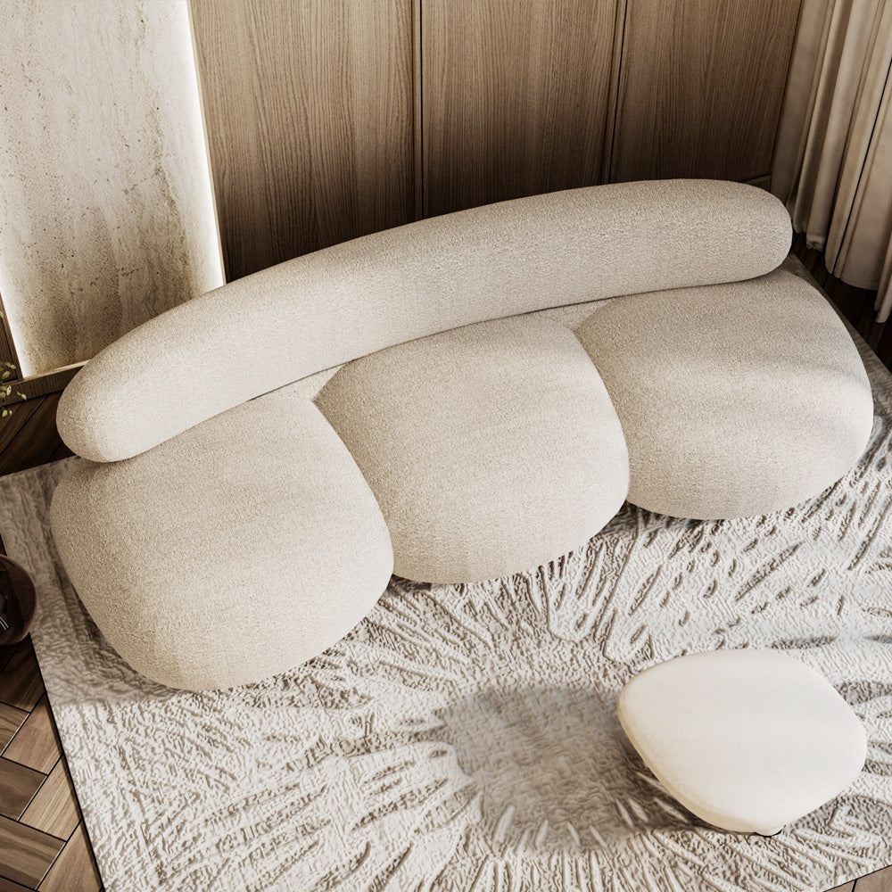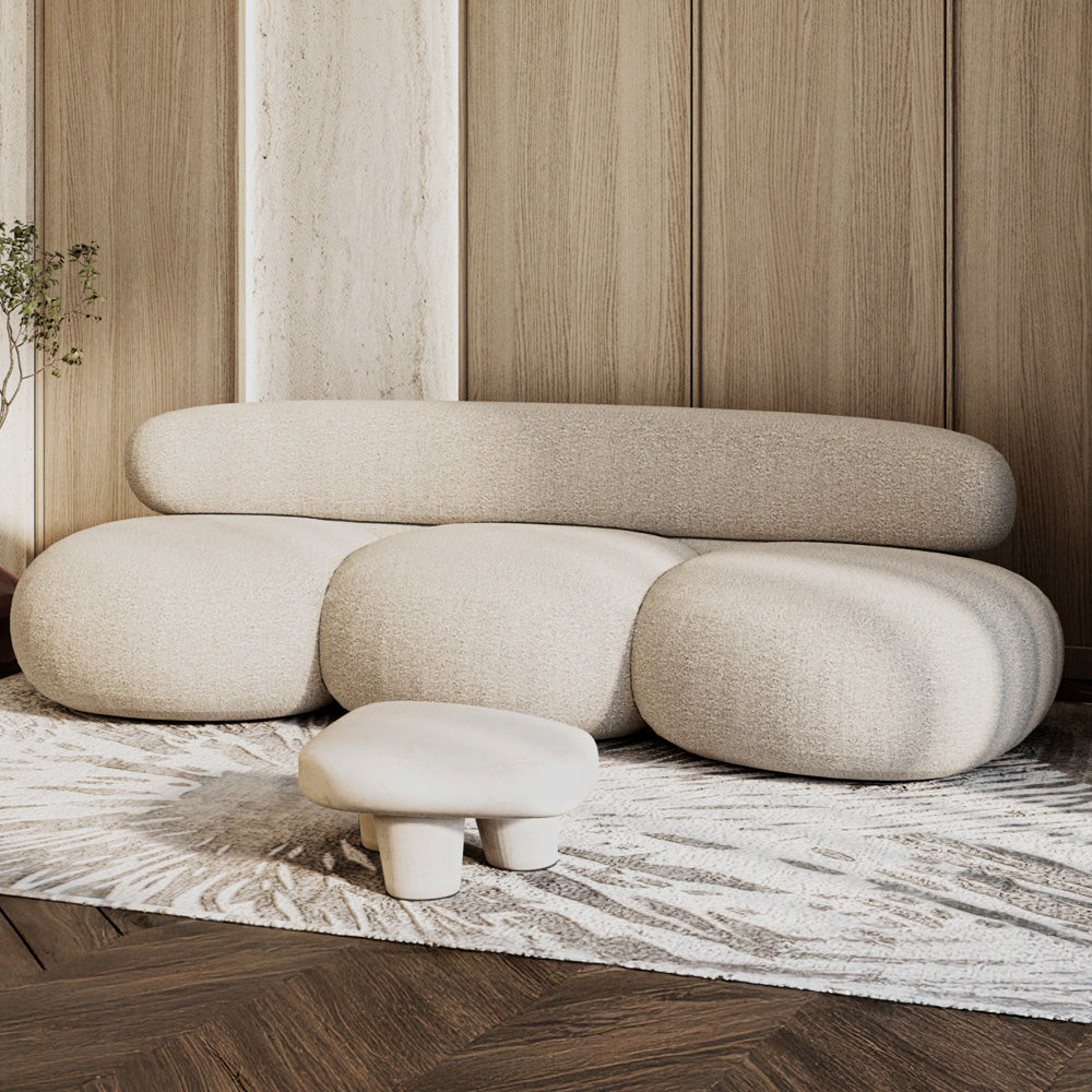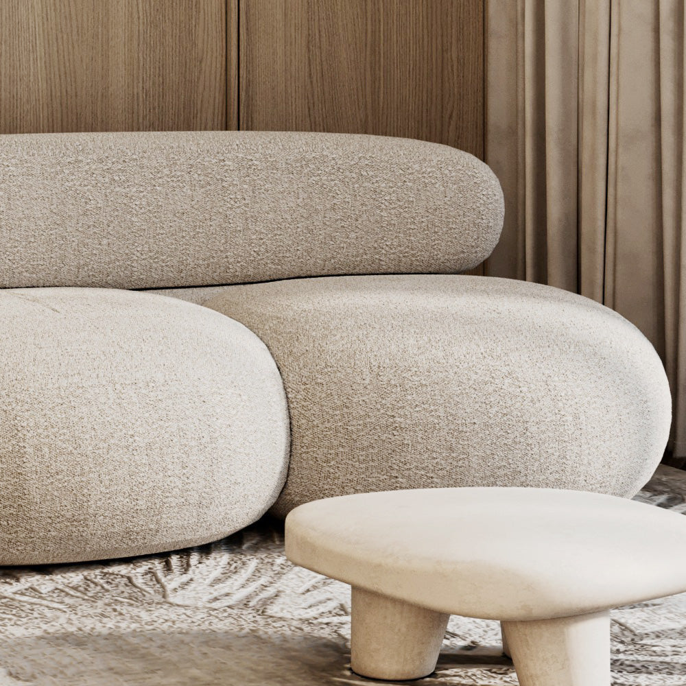 كنبة 3 مقاعد من الهوم – تنجيد فاخر بقماش البوكلية وهيكل من الخشب السويدي – لون بيج