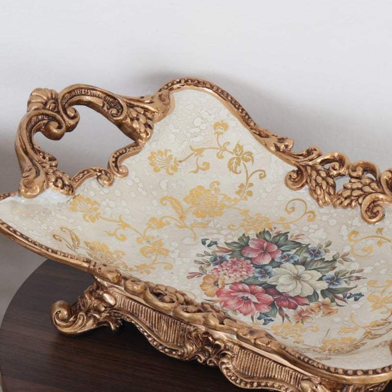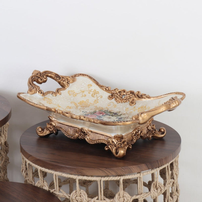 Introducing this exquisite oval bowl, a classic decorative piece designed to add a touch of sophistication and regal beauty to your tables. Its elegant shape and sculpted details make it a work of art in itself.