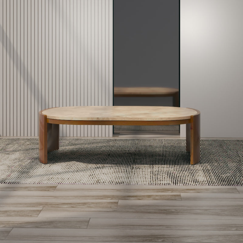 This center table from Alhome showcases a harmonious blend of marble and wood, offering timeless elegance and functional design suitable for contemporary living rooms.