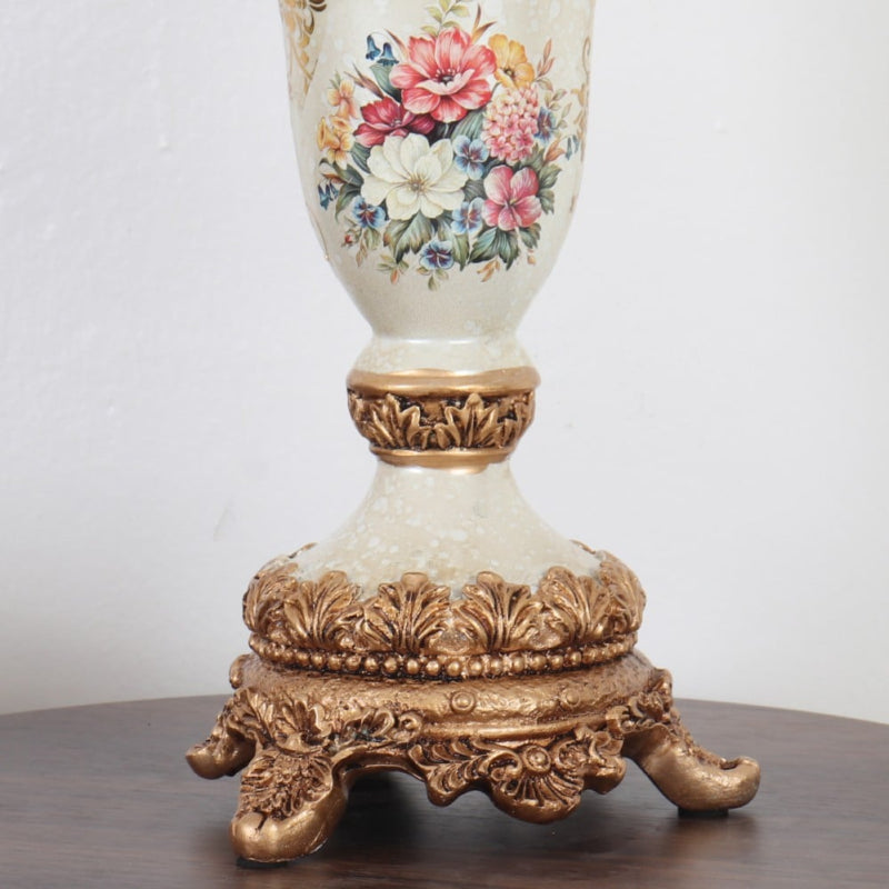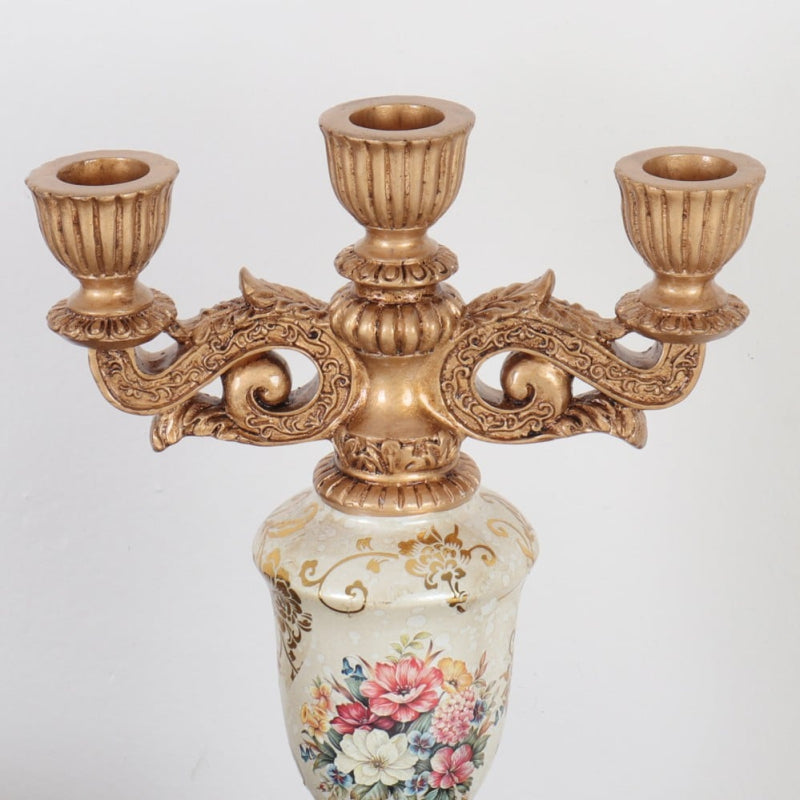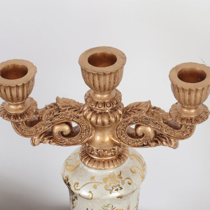 Add a touch of luxury and warmth to your home décor with this elegant ceramic candlestick, featuring a serene beige color and sophisticated gold details. The candlestick boasts artistic embellishments that lend it a charmingly classic feel, making it the perfect piece to adorn coffee tables, entryways, or any corner that needs a touch of artistic flair.