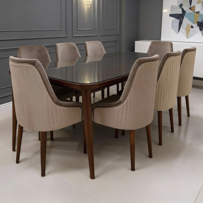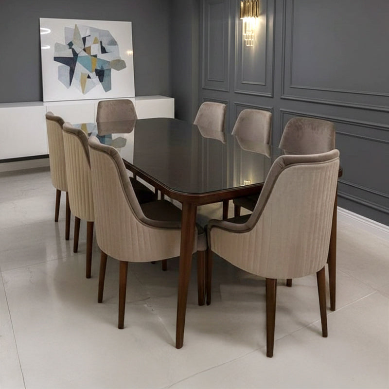Enhance your dining area with this elegant dining table by Alhome, combining wood and glass for a modern and refined look that suits contemporary homes.
