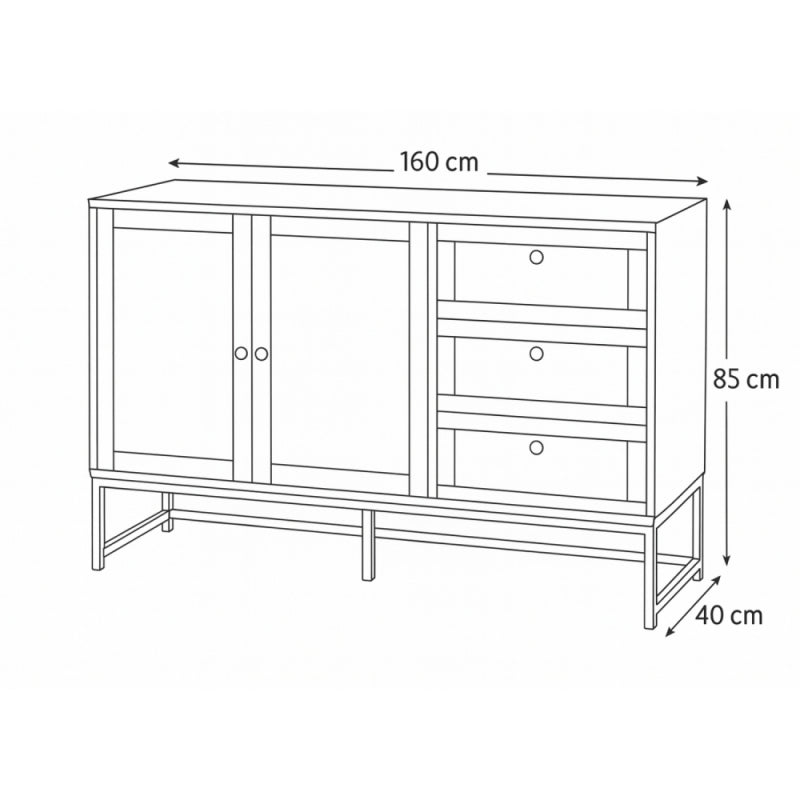 Elegant Wooden Console with Iron Legs and Multiple Drawers - 160x40x85 cm