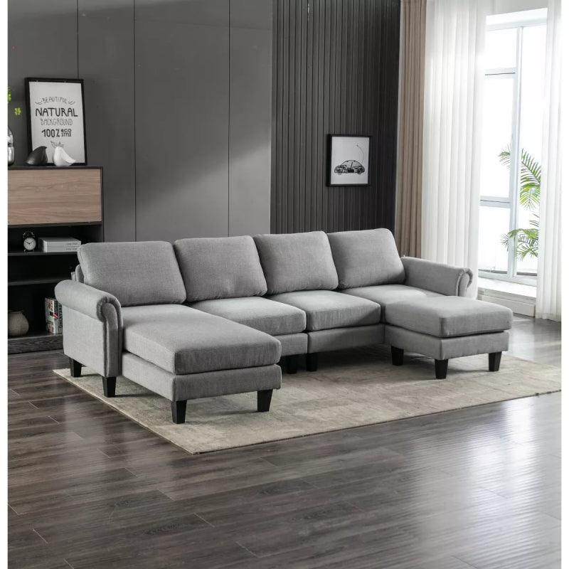 قم بتحويل غرفة المعيشة الخاصة بك باستخدام كنبة كتان رمادية على شكل حرف U من الهوم، حيث تلتقي الأبعاد الواسعة مع الراحة المعاصرة، مما يوفر حلاً أنيقًا وأنيقًا للجلوس لمنزلك.