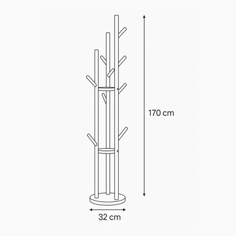 Modern Floor-Standing Clothes Rack with Multiple Hooks and Marble Base - 170x32 cm - Gold