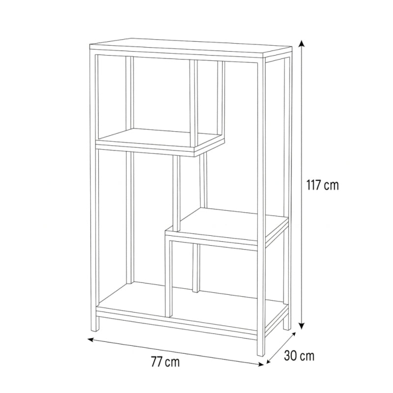 Practical dimensions of 77 x 30 x 117 cm make it suitable for corners and small to medium-sized spaces.