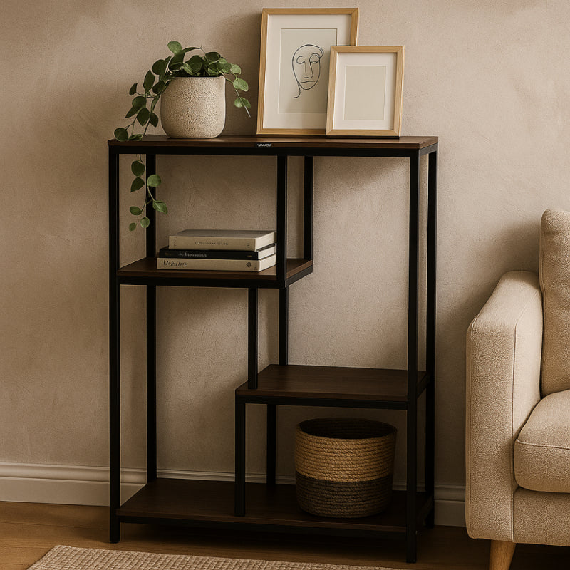 Its tiered design creates an attractive display, allowing you to showcase plants, books, and decorative items in an organized manner,