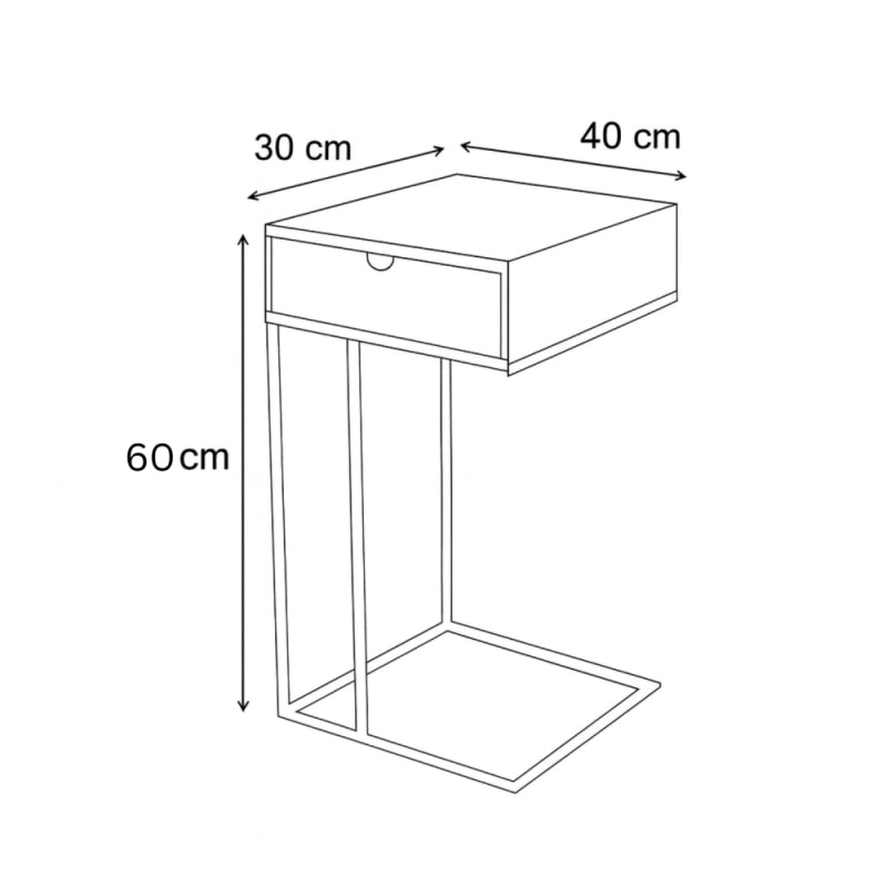 Modern Side Table with Drawer and Metal Base - 40x30x60 cm