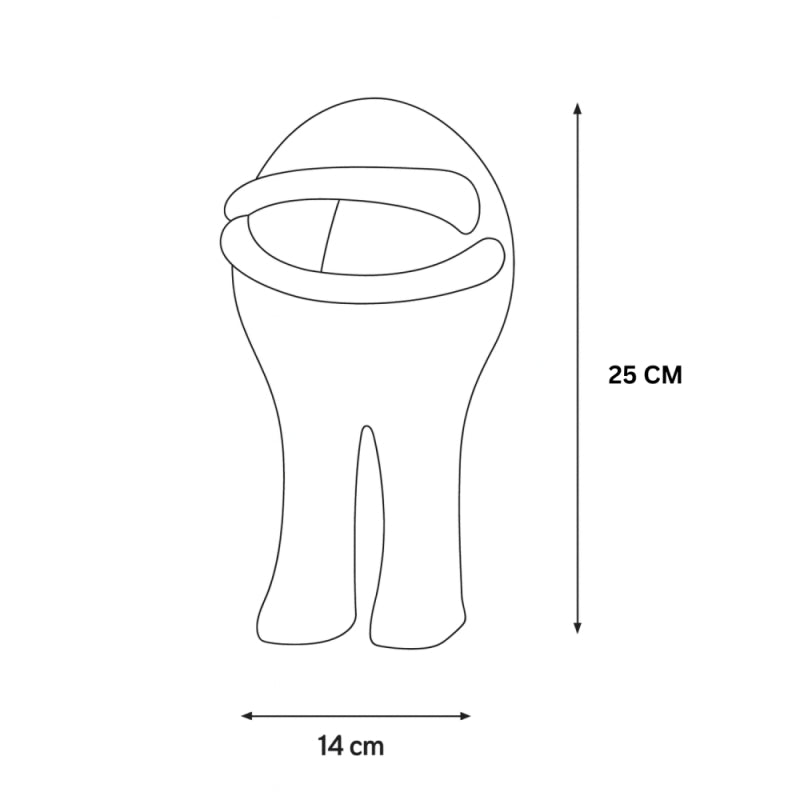 Measuring 14 cm in diameter and 25 cm in height, it's perfect for display on shelves and side tables.