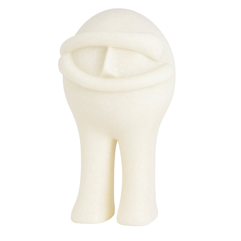 Its abstract shape, resembling a small character, adds a warm and inviting touch to any shelf or table.