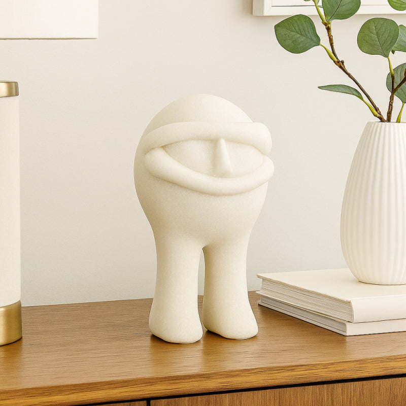 A modern decorative figurine crafted from resin with a charming artistic design that blends simplicity and playfulness.