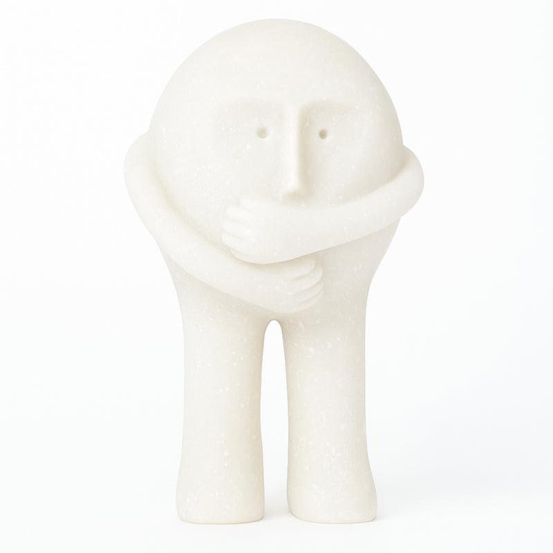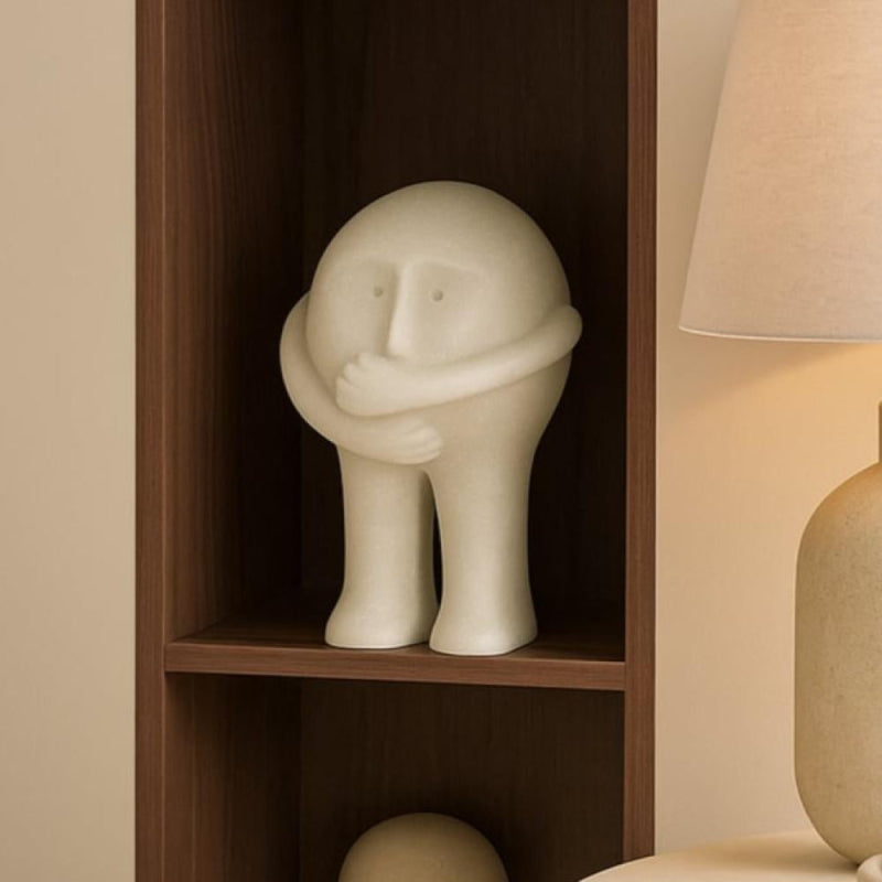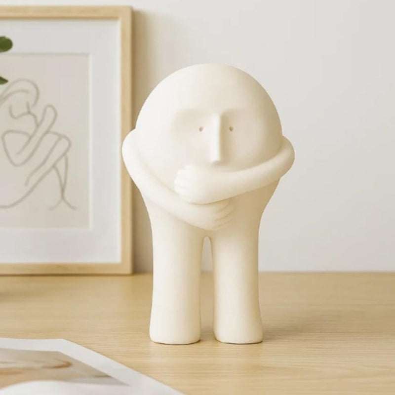 Its abstract shape resembles a small figure embracing itself, adding a warm and inviting touch to any shelf or table.