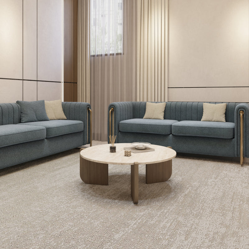 Round Coffee Center Table Marble and Wood by Alhome - 95x34x95 cm