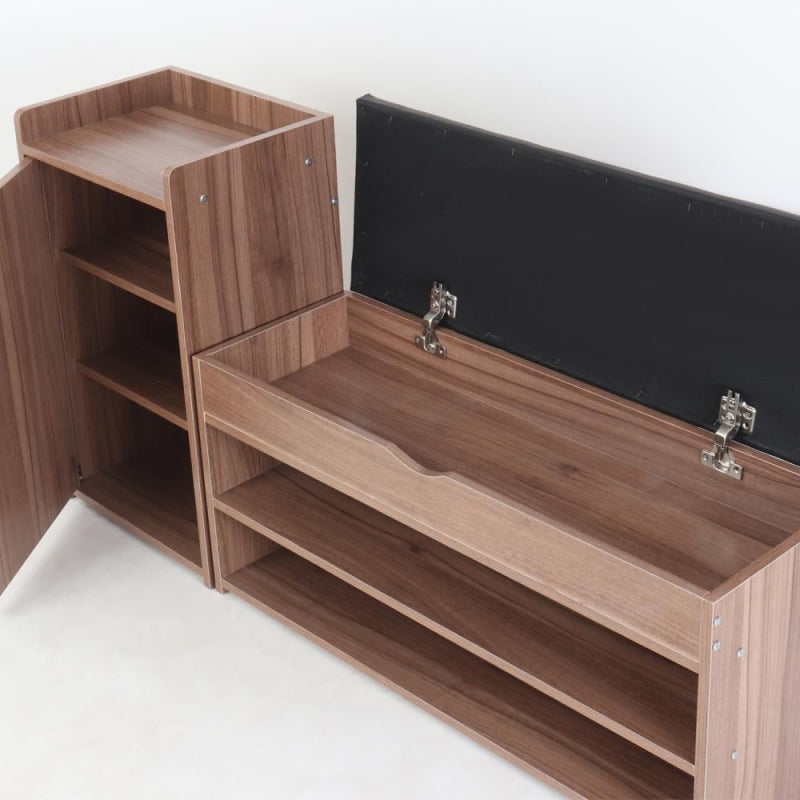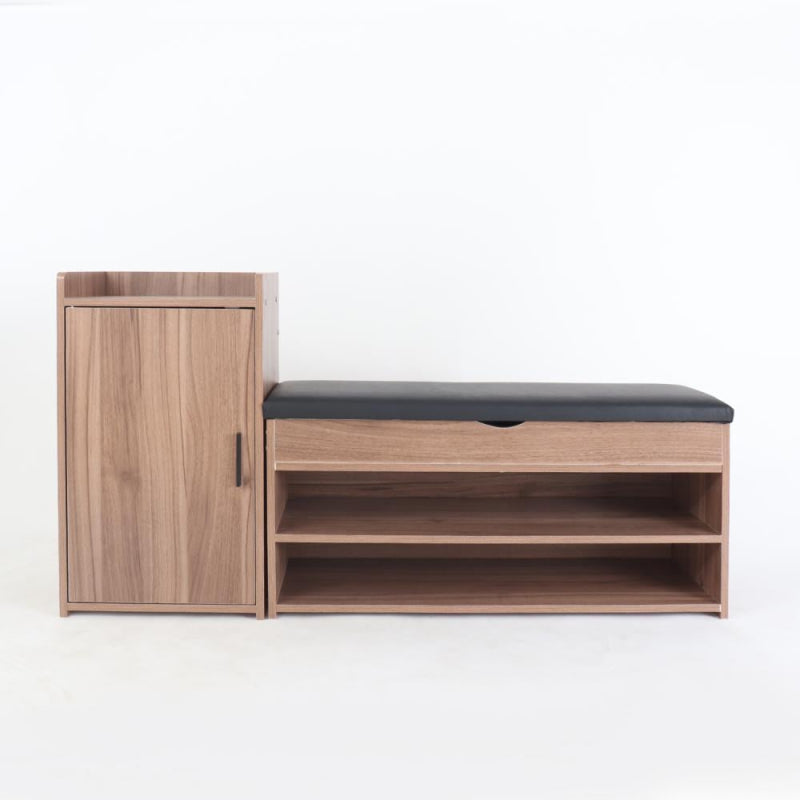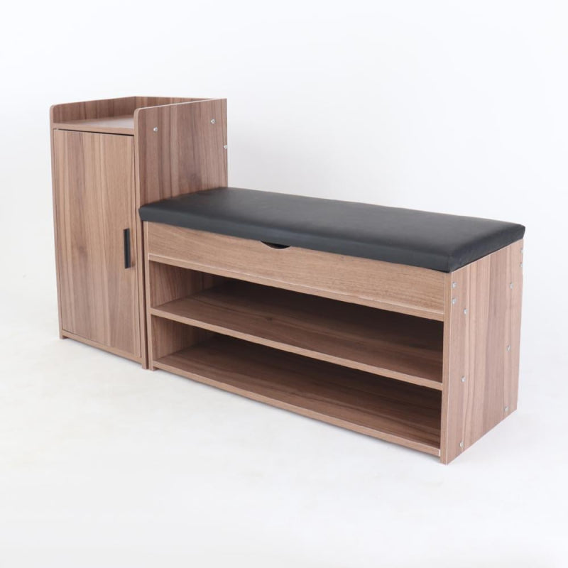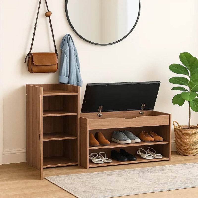 Its warm wood finish adds a touch of elegance, while the side shelves provide excellent storage space for shoes or everyday items.
