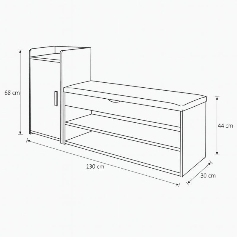 It combines a closed cabinet for storing items with a comfortable, padded bench for easy shoe putting on.