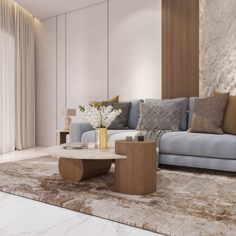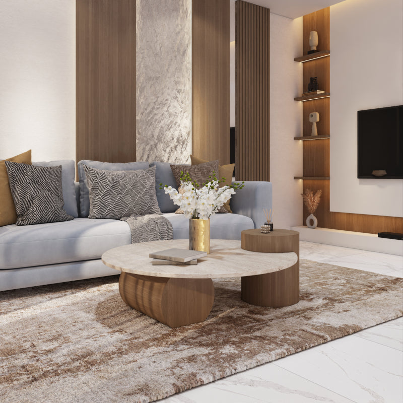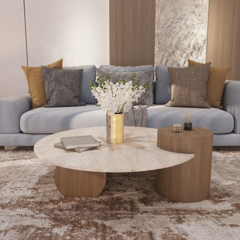 This Alhome center table blends natural marble and wood to create a sophisticated and practical furniture piece for your home.